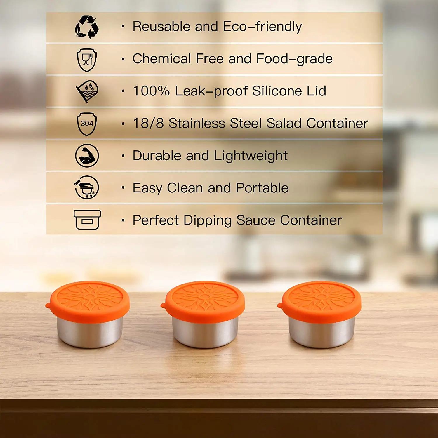 Безопасность: материал из нержавеющей стали контейнер для приправы является безопасным. Сам контейнер изготовлен из нержавеющей стали 304. Крышка контейнера-съедобный силикон. Он протестирован европейским стандартом LFGB. Герметичность: герметичность контейнера хорошая. До тех пор, пока крышка надлежащим образом покрыта, она может достичь 100% герметичности. Легко чистить: край контейнер для приправы-это гофрированная конструкция, которая делает уборку проще и проще, безопасность посудомоечной машины. Дополнительные функции: в дополнение к контейнеру для приправ, его также можно использовать для хранения сухофруктов, кофейных зерен, печенья, конфет, фруктов и мяса и т. д.