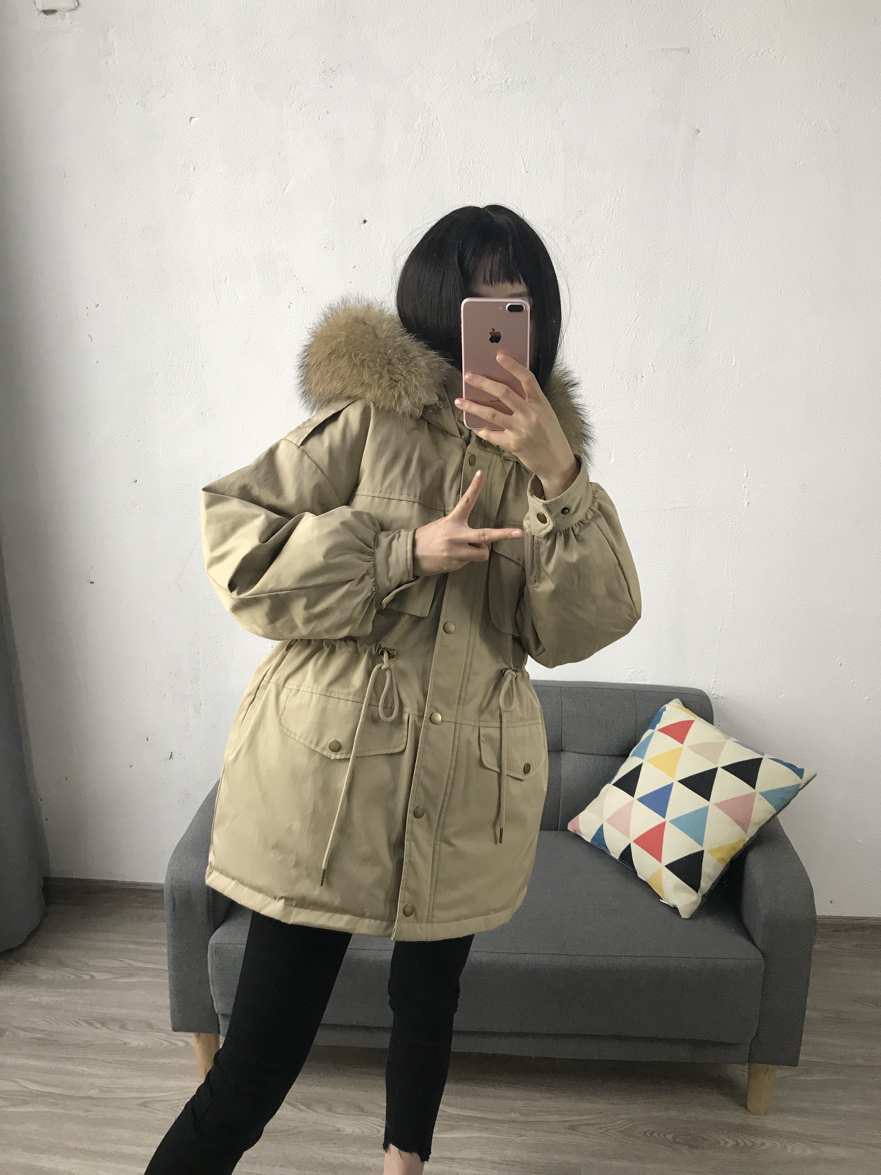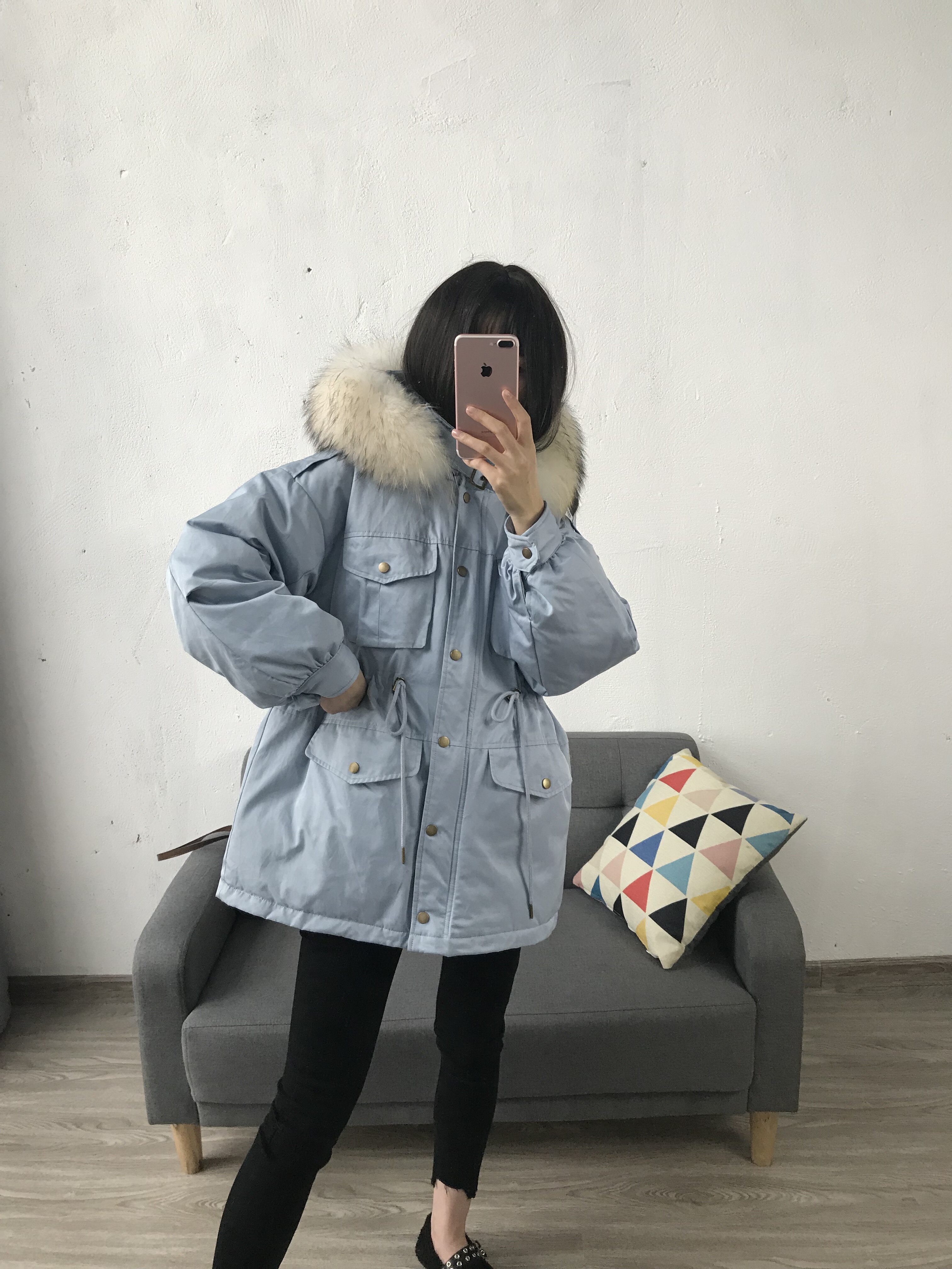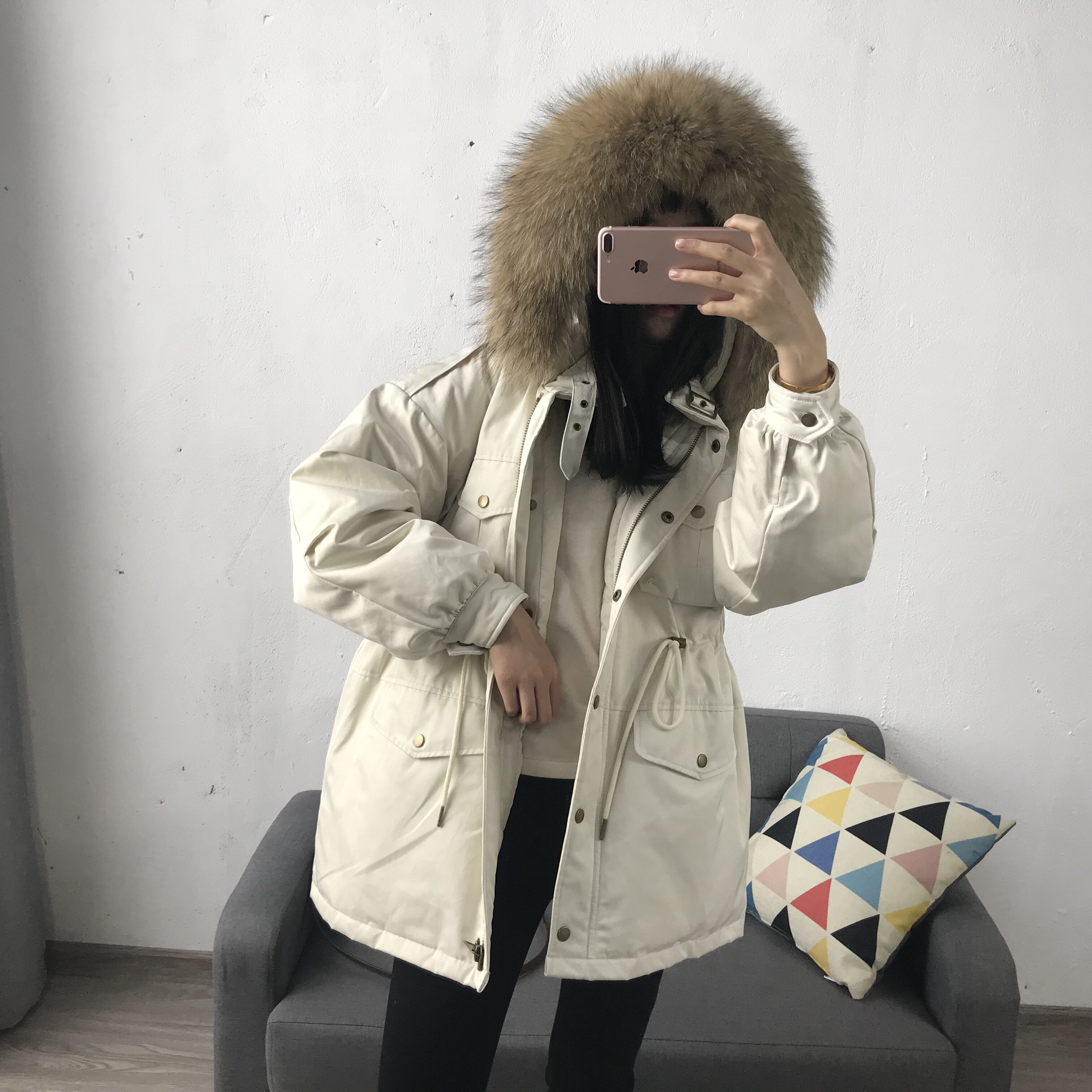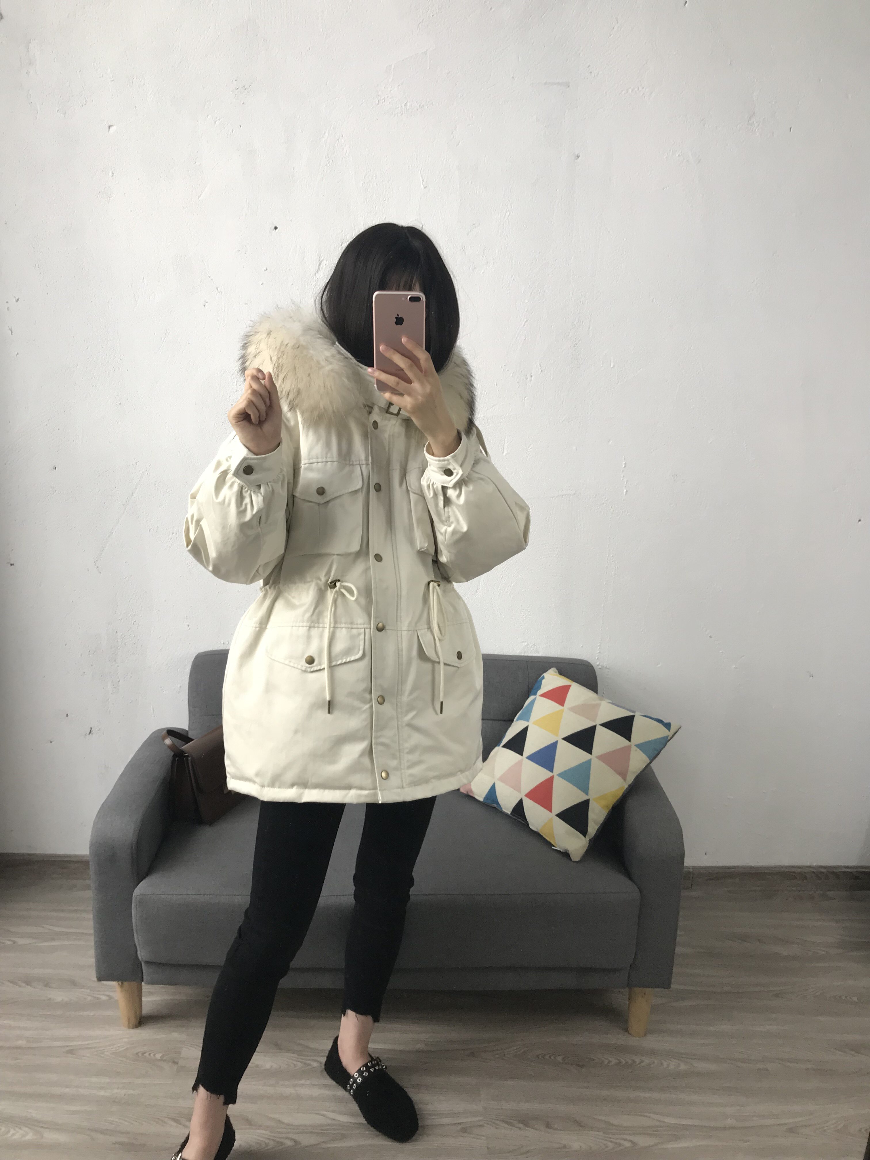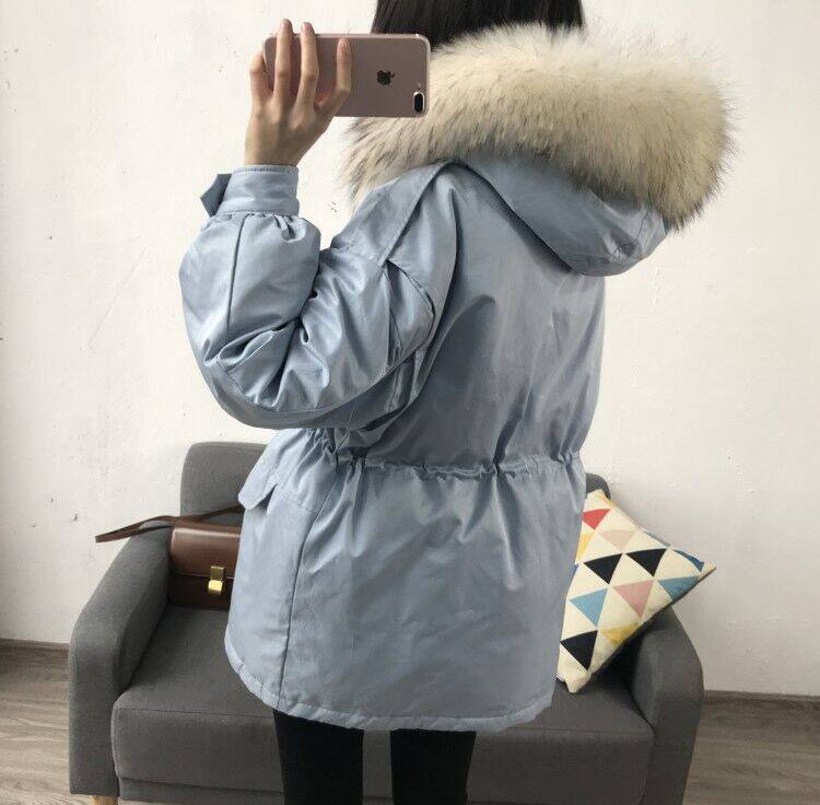 Материал:Воротник из натурального меха енота+Подкладка из белого утиного пуха= Роскошная утепленная парка