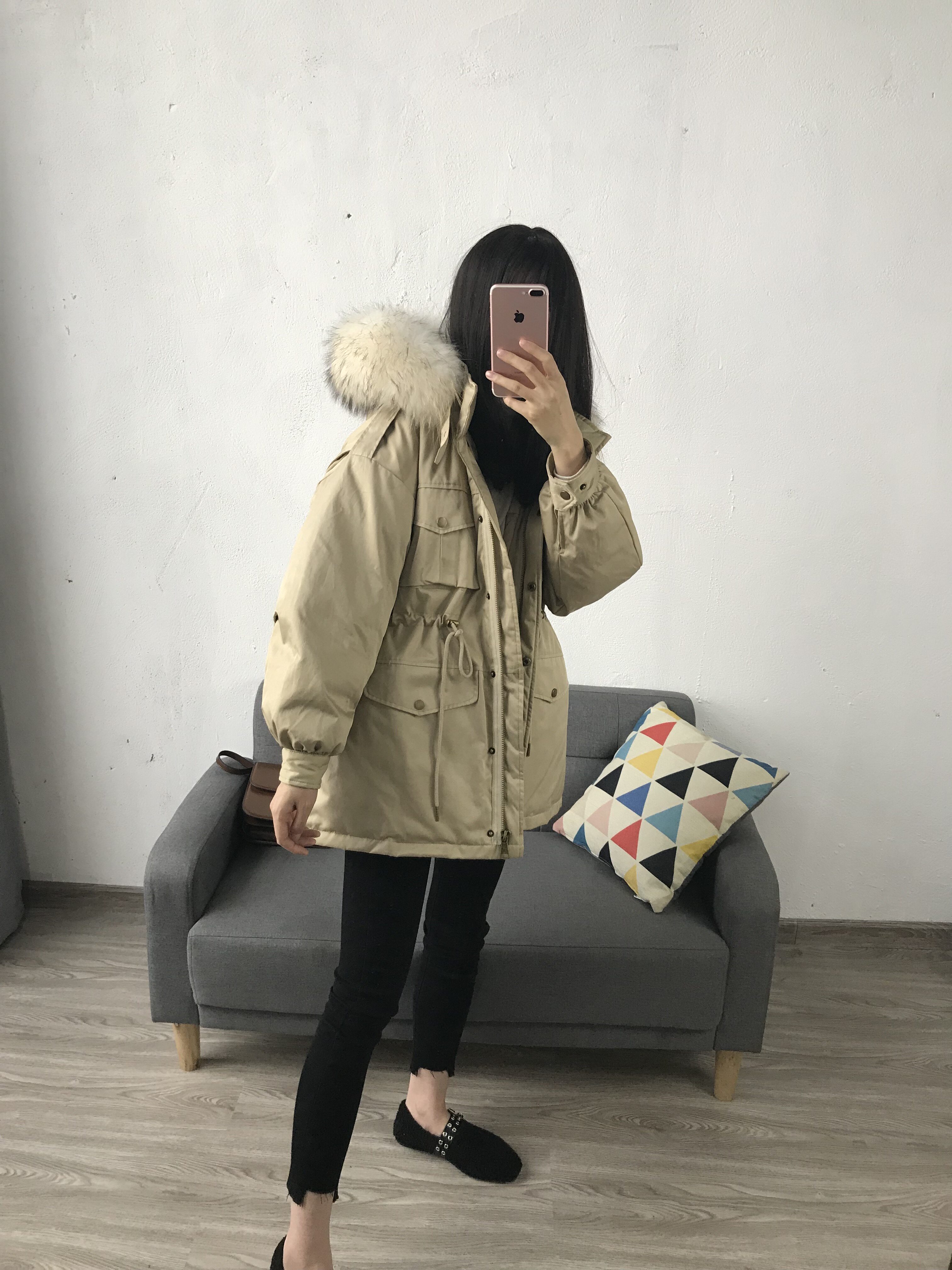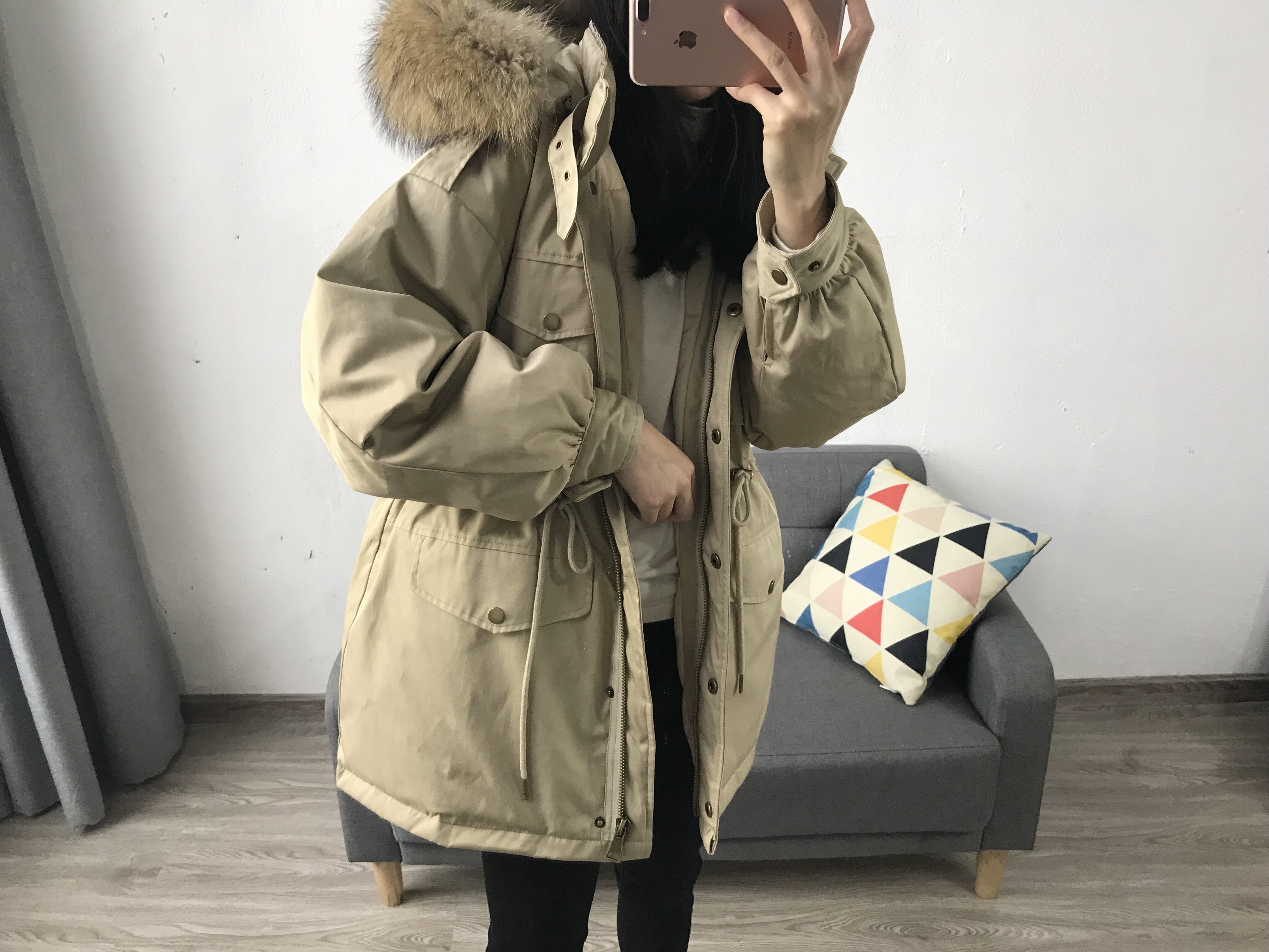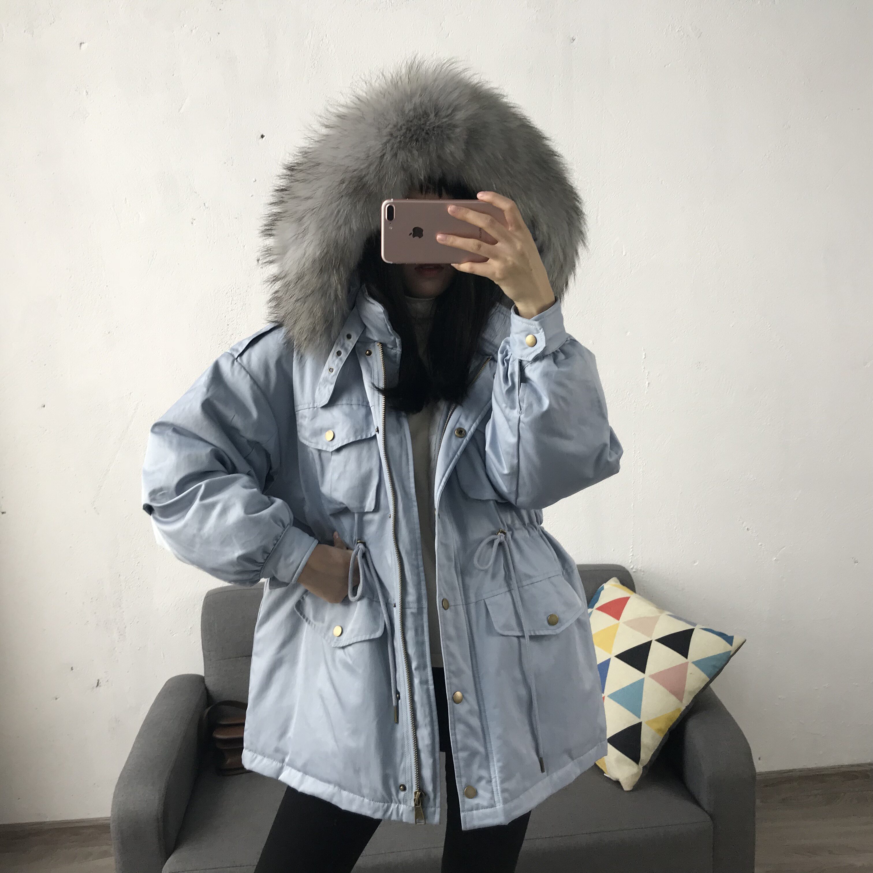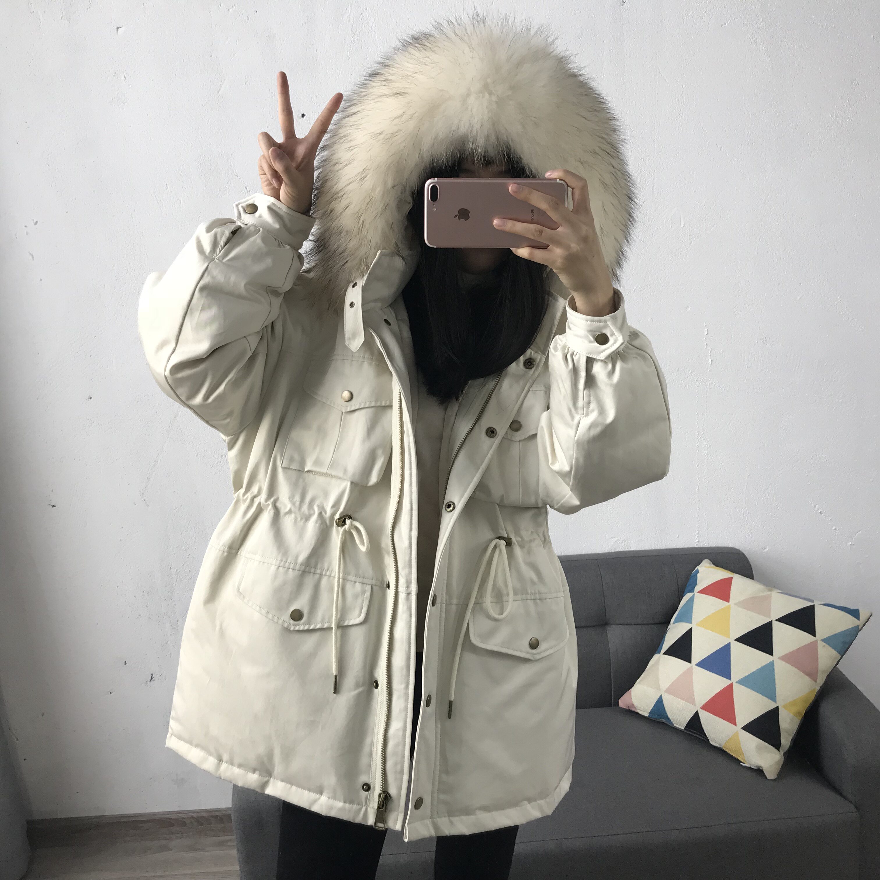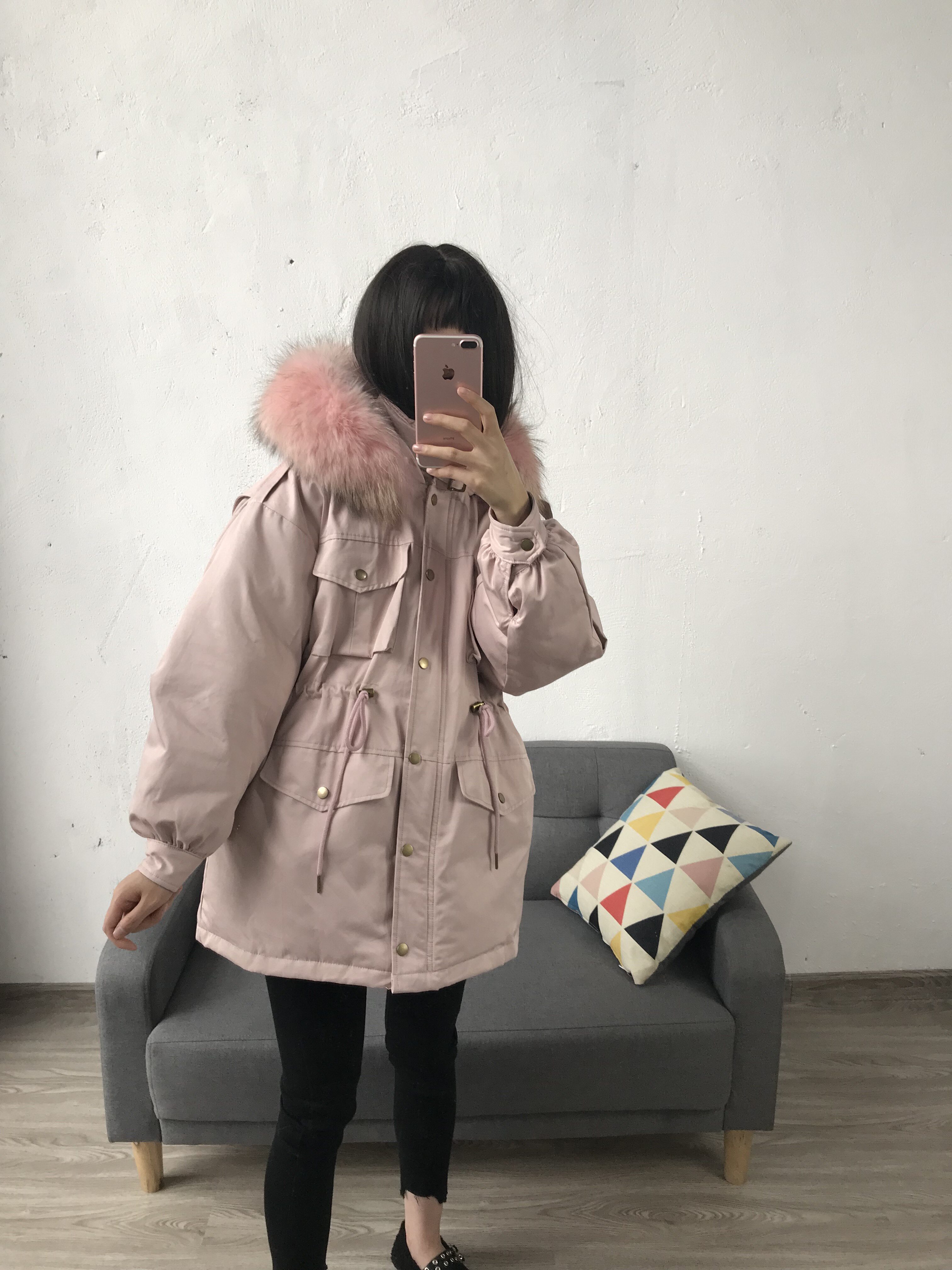 Материал:Воротник из натурального меха енота+Подкладка из белого утиного пуха= Роскошная утепленная парка