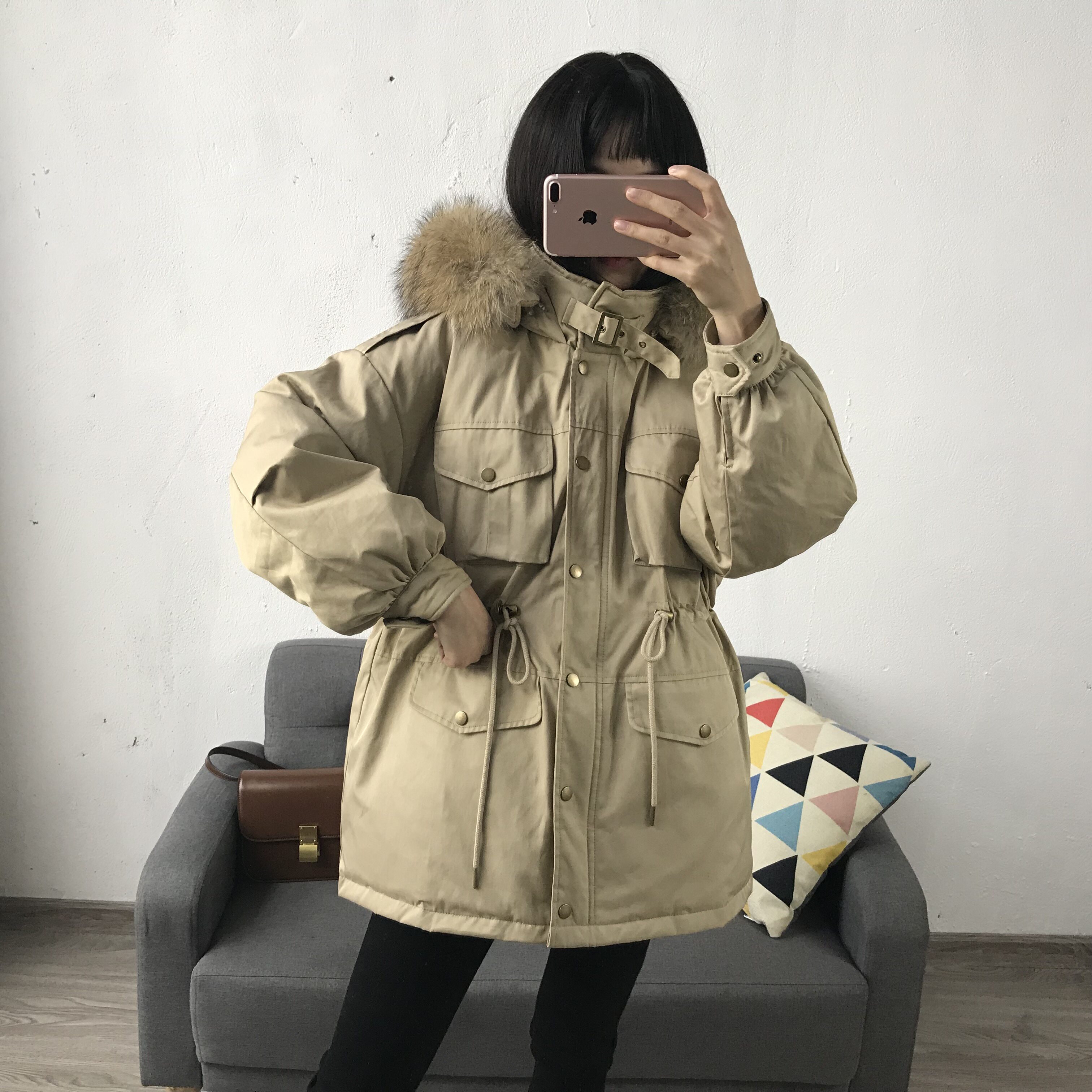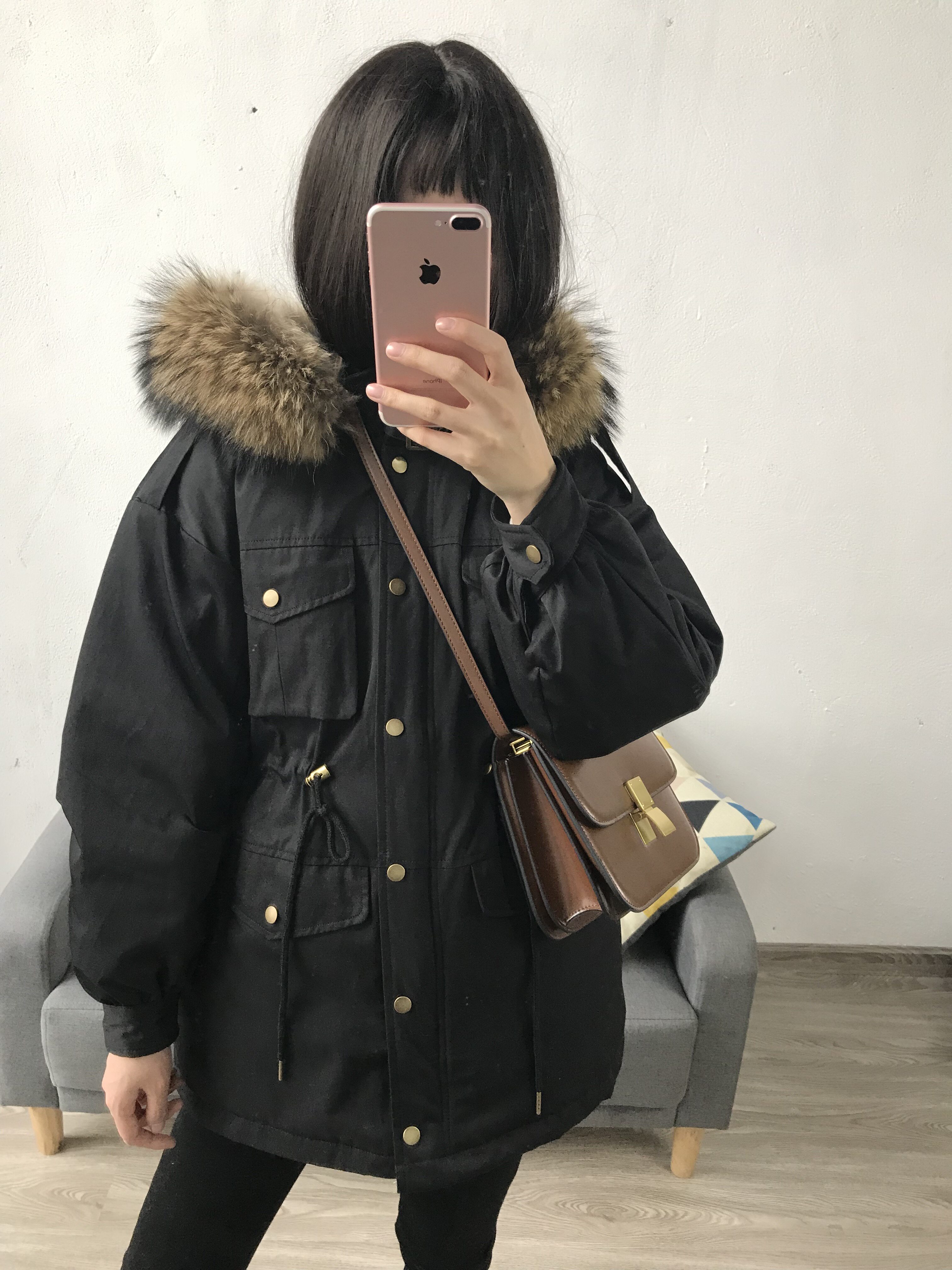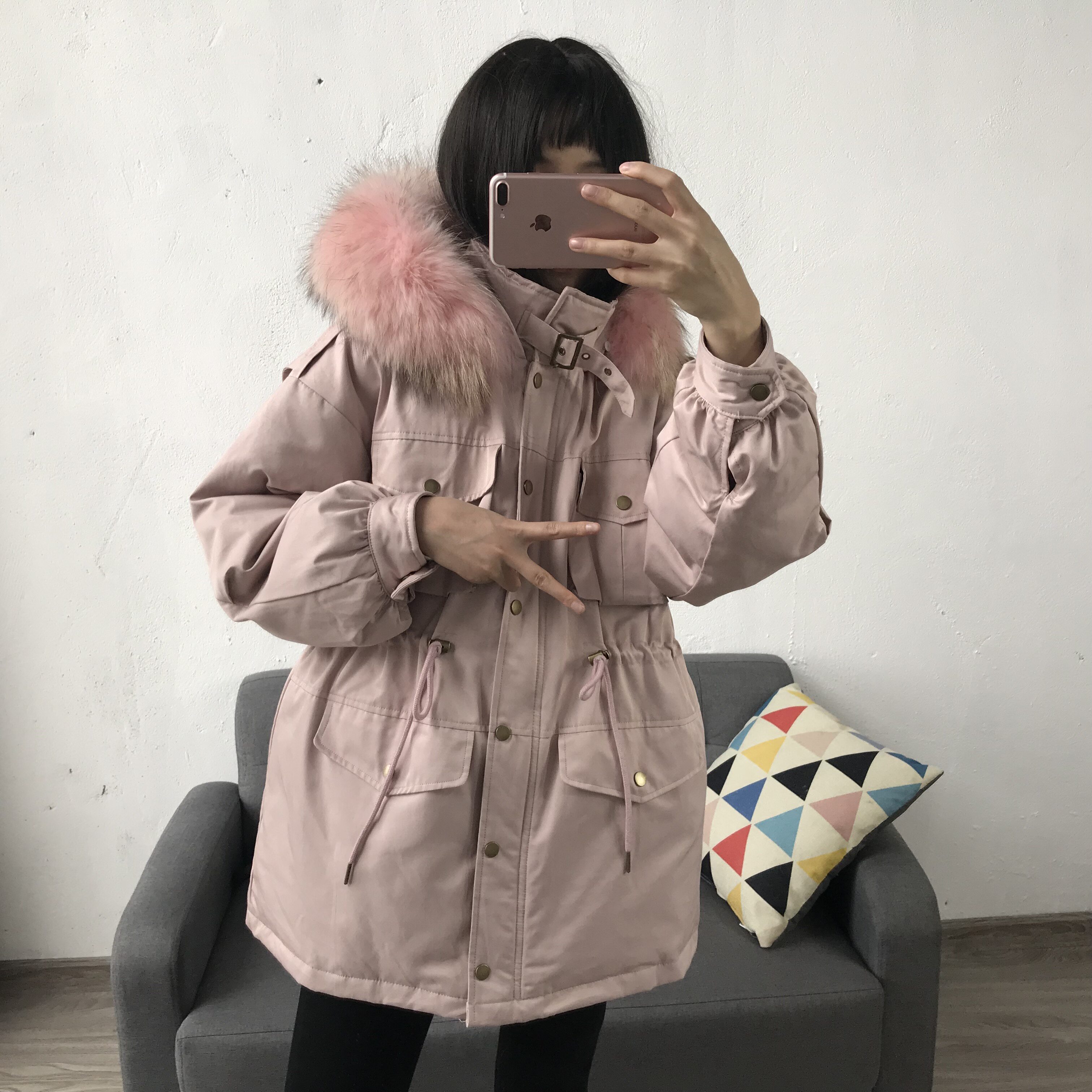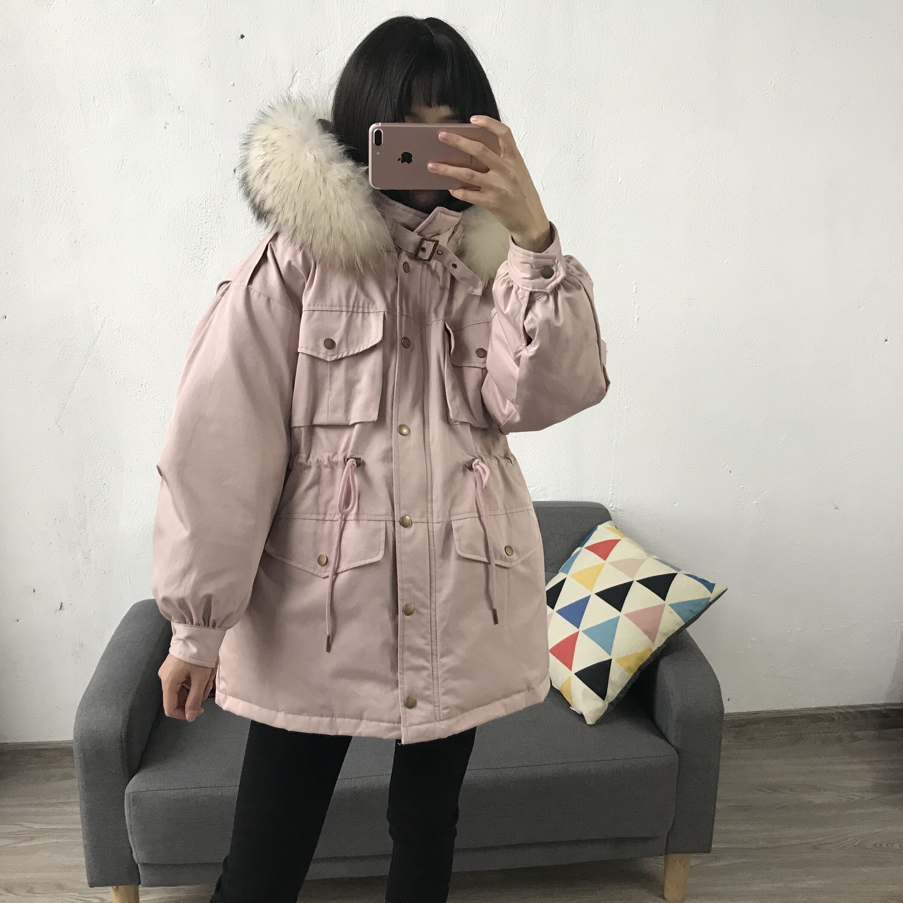 Материал:Воротник из натурального меха енота+Подкладка из белого утиного пуха= Роскошная утепленная парка