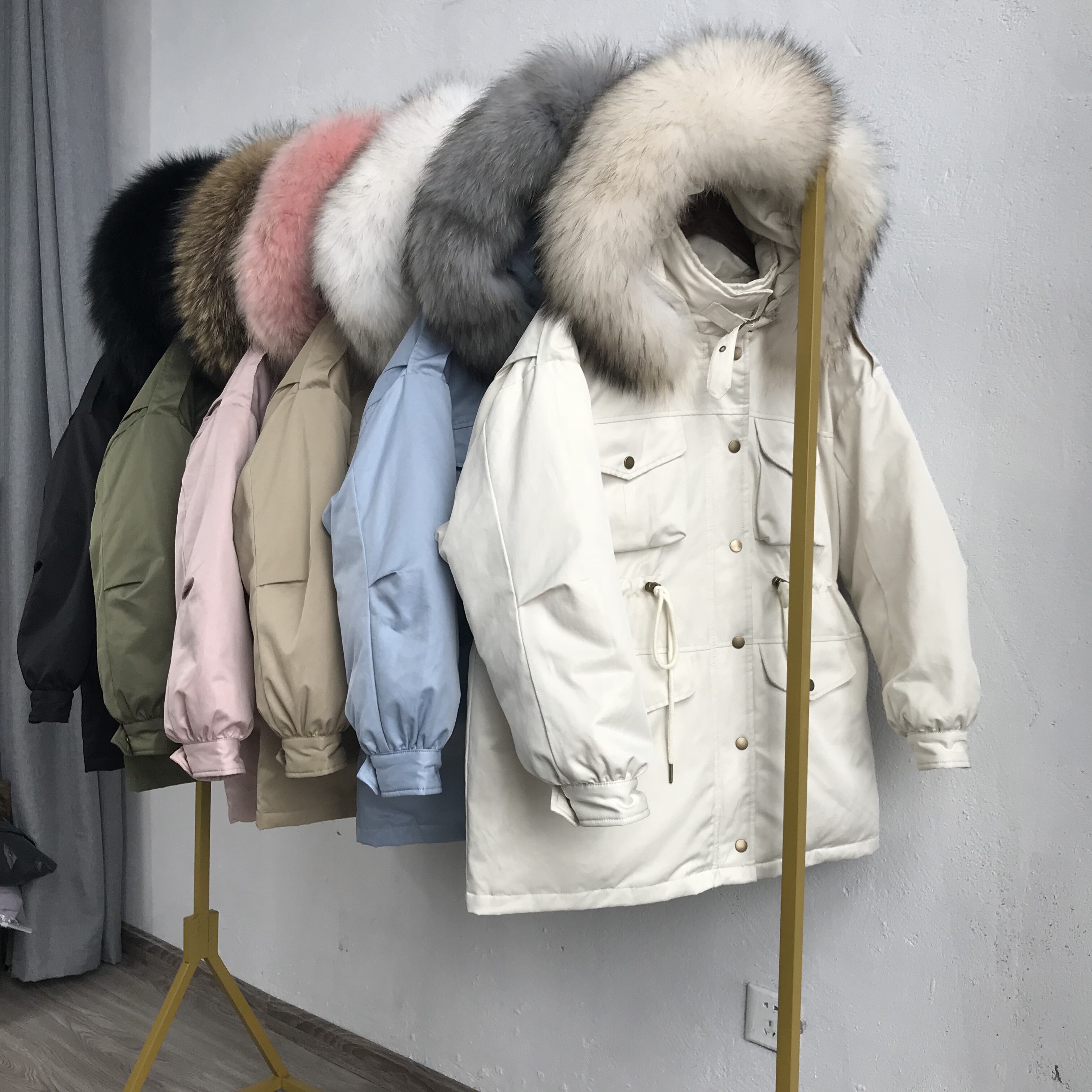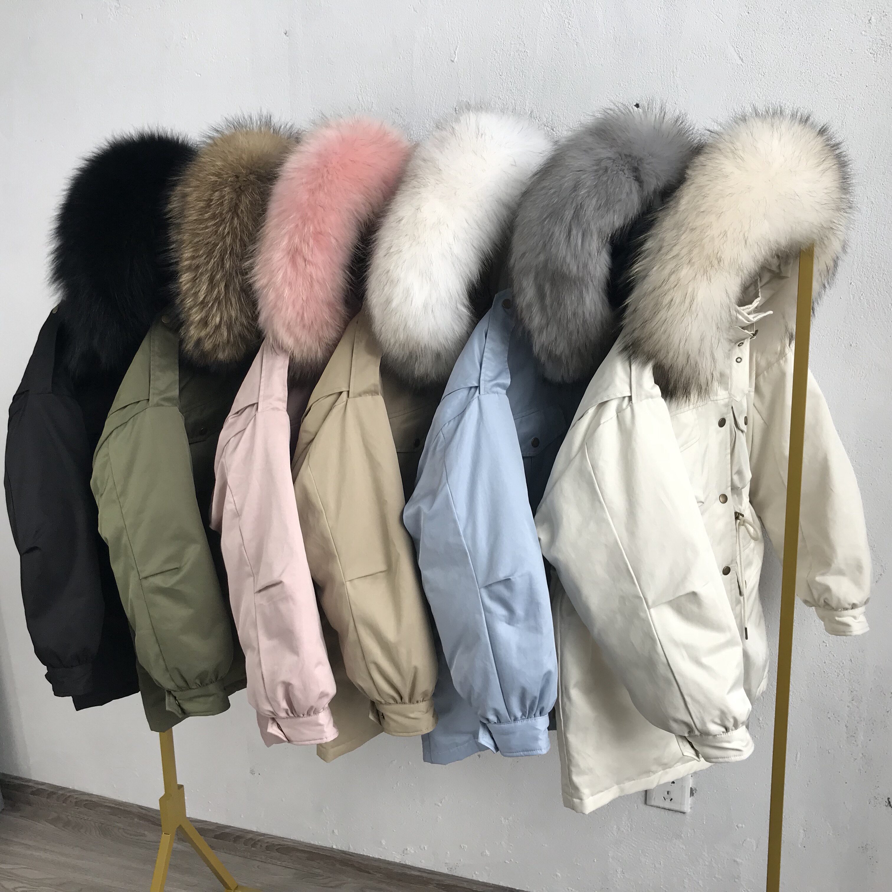 Если вам нравится другой цветной меховой воротник, свяжитесь с нами! Куртка высокого качества!