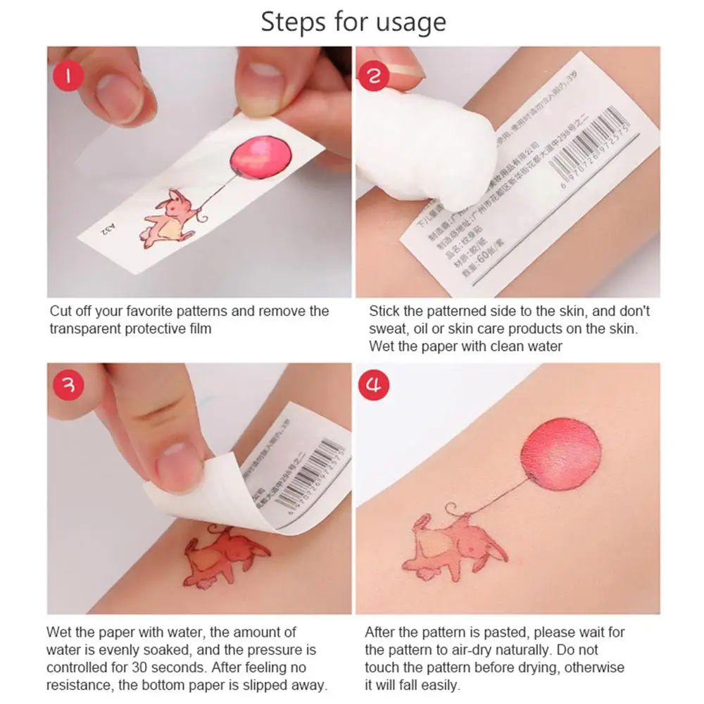 1. Отрежьте рисунок, который вам нравится, и снимите прозрачную защитную пленку. 2. Поместите одну сторону узора на кожу, не потейте, масло, средства по уходу за кожей, промокните бумагу свежим 3. Намочите бумагу водой, количество воды должно быть равномерным, и нажмите в течение 30 секунд. После того, как вы не почувствуете сопротивления, Снимите нижнюю бумагу. 4. После установки узора, пожалуйста, подождите, пока рисунок высохнет и не прикасайтесь к узору перед высыханием. В противном случае, он будет легко упасть. 5. Способ 1: используйте небольшое количество спирта или средства для удаления макияжа на рисунке. Через 10 секунд удалите макияж из хлопка с теплой водой и попробуйте удалить его.