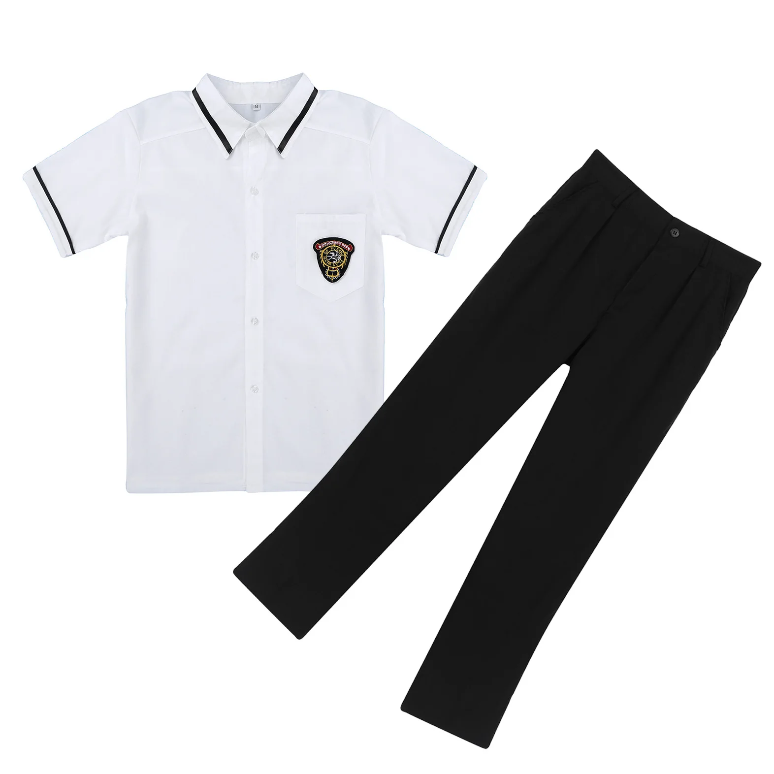 Короткие рукава, отложной воротник и левый нагрудный карман, застежка на пуговицах спереди, Черный Съемный галстук и значок для украшения.
