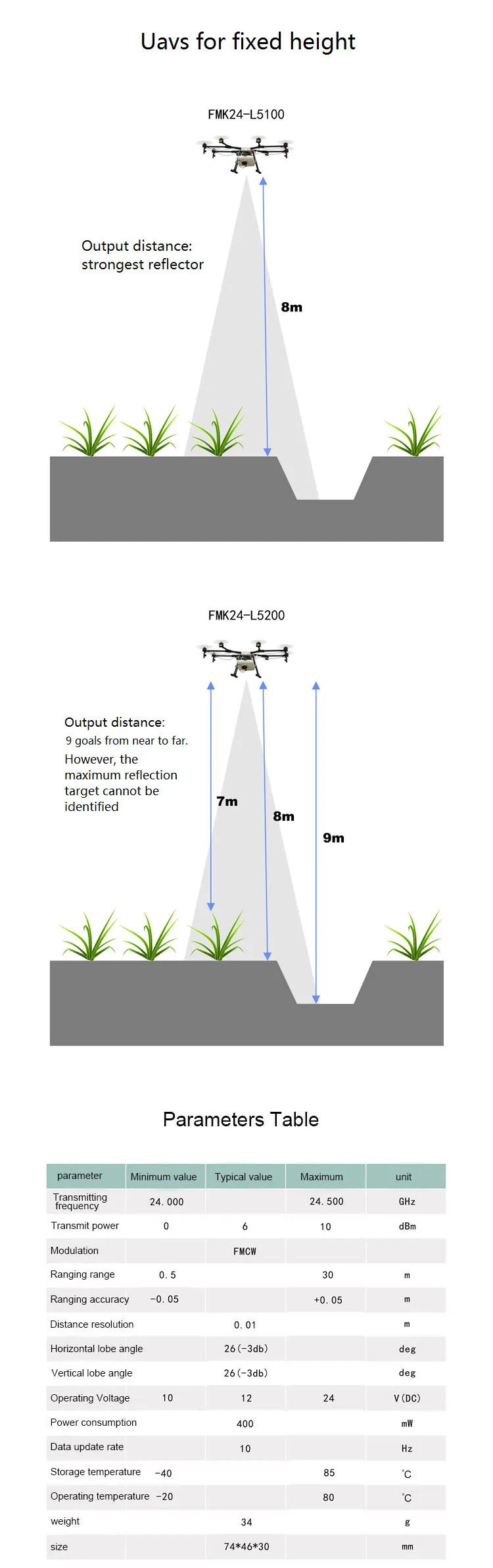 Этот продукт является специальным радаром высоты для БПЛА., вес только34 граммПодходит для большинства условий полета.