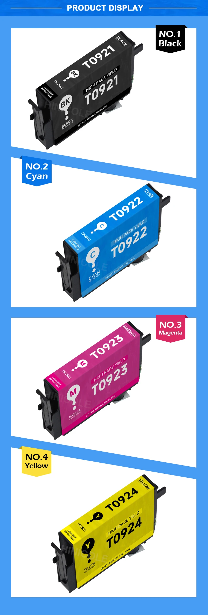 12 шт. совместимый чернильный картридж T0921 T0922 T0923 T0924 для Epson