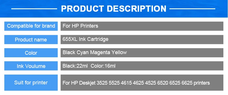 8 шт. совместимый 655 чернильный картридж Замена для HP 655 для HP 655
