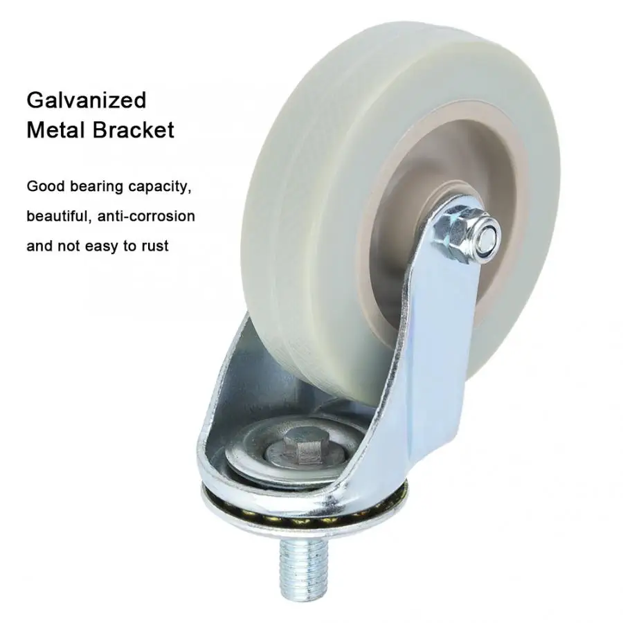 МЕБЕЛЬНОЕ колесико из ПВХ рулоны гладко и бесшумно, без повреждения полов.Оцинкованный металлический кронштейн с хорошей несущей емкостью, красивый, антикоррозионный, не легко ржаветь.