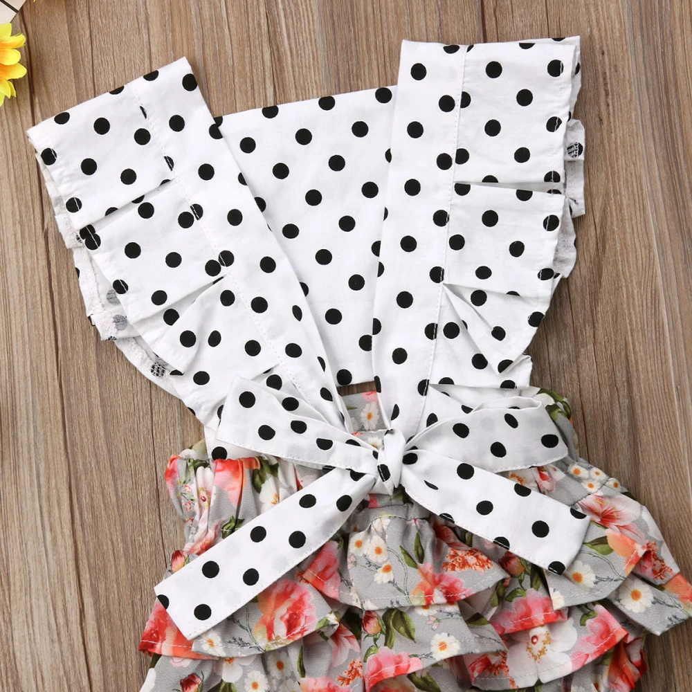 Одежда для новорожденных и маленьких девочек; кружевной комбинезон в горошек с открытой спиной; Детский комбинезон; костюм; пляжный костюм; одежда для малышей; комбинезоны