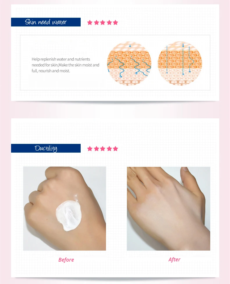 Содержит гиалуроновую кислоту, гладкая и питает вашу кожу, делает вашу кожу более увлажненной