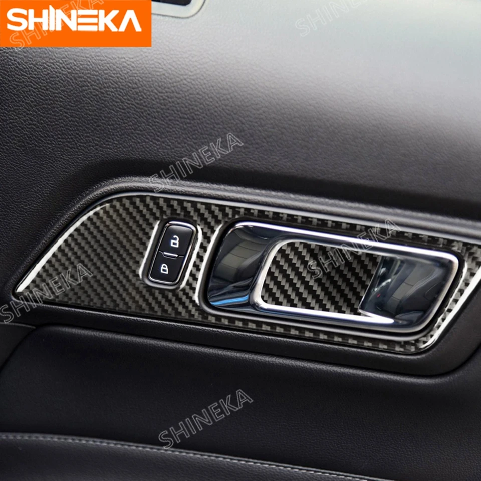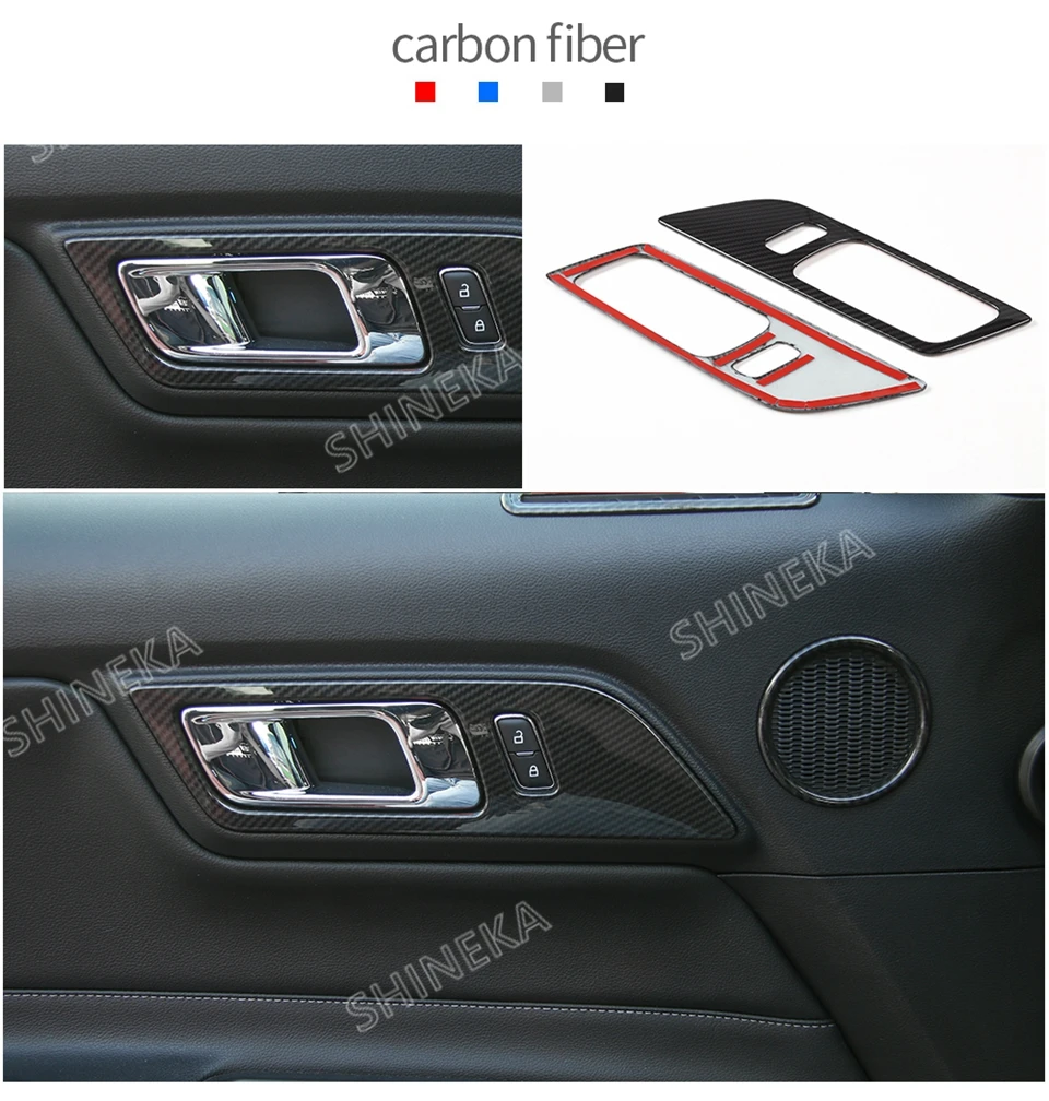 Молдинги для салона Ford Mustang, внутренние ручки из углеродного волокна, дверная чаша, декоративная наклейка для автомобиля Ford Mustang 2015 2016 2017