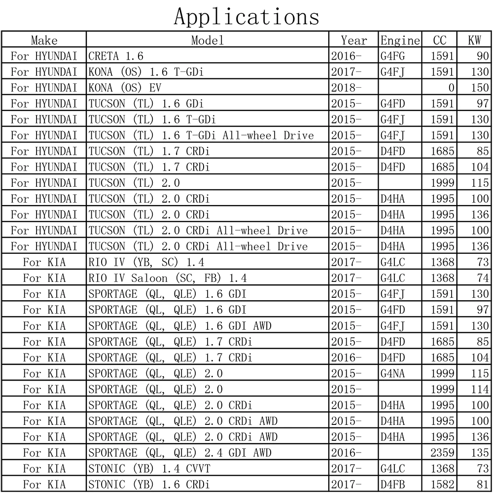 Для KIA STONIC (YB) 1,4 CVVT 2017-