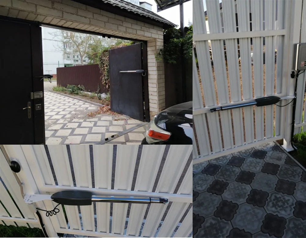 ① 2 * открывания ворот (приводной двигатель) ② 1 * блок управления (с трансформатором) ③ 1 * набор аппаратных аксессуаров ④ 1 * резиновая пробка ⑤ 2 * пульт дистанционного управления ⑥ 1 * руководство на английском языке Дополнительные аксессуары, выберите комплект цветов, показанный на фото В некоторых странах холодный климат, мы добавляем антифриз масло внутри двигателя, он может работать в холодной среде.