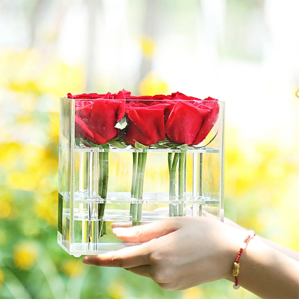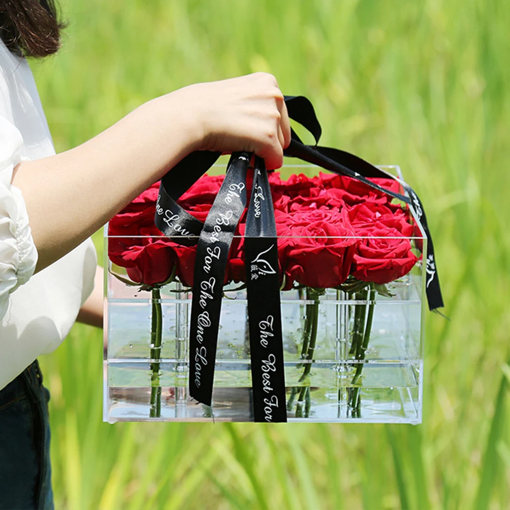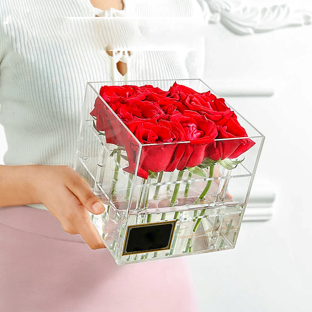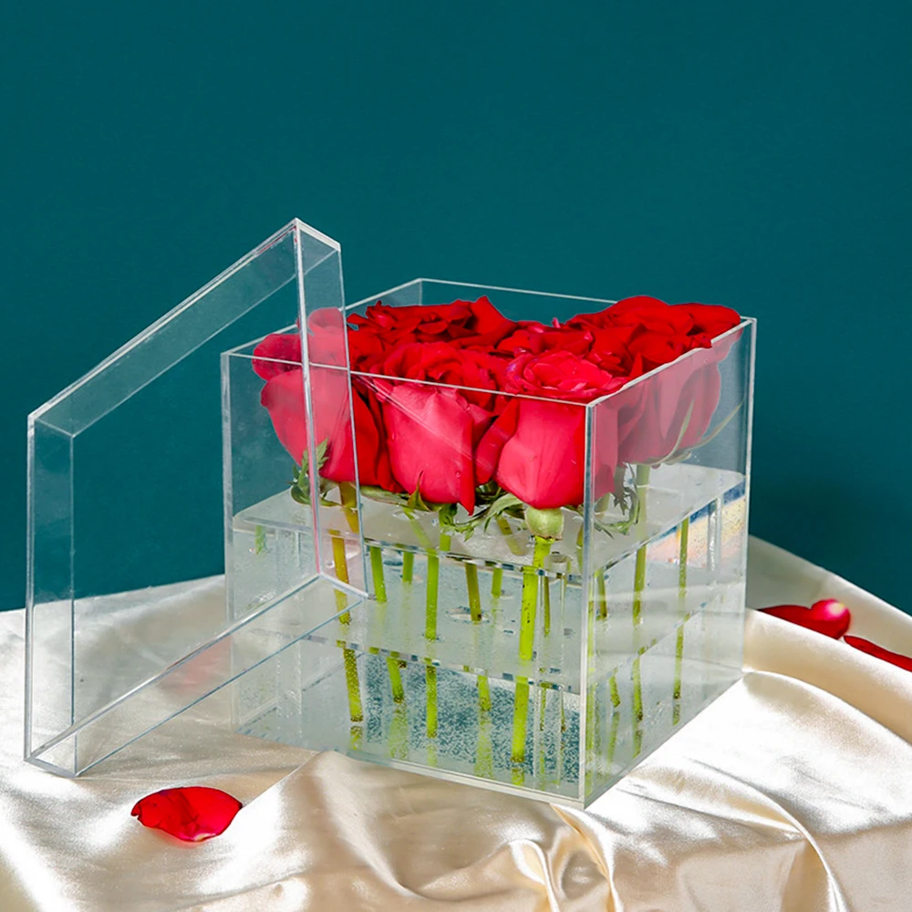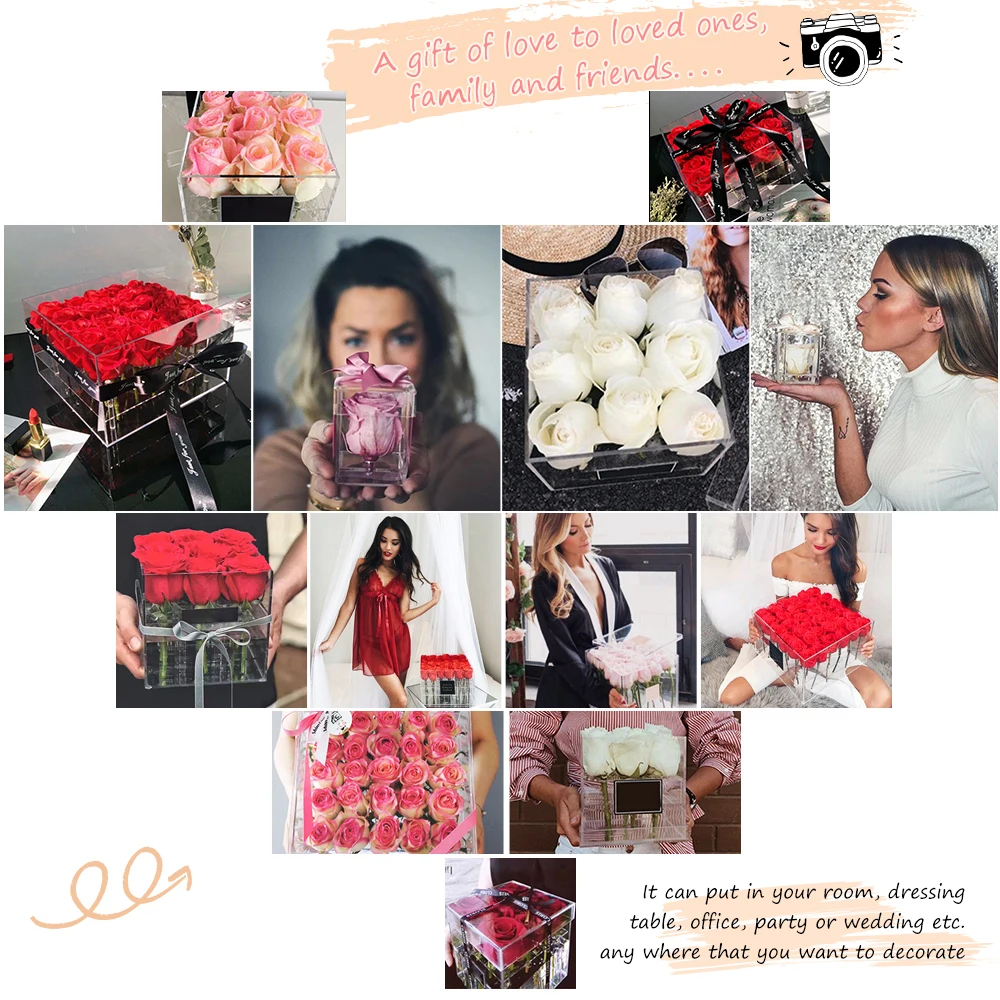 Роза цветок коробка для хранения с крышкой акриловая прозрачная косметичка, чехол для макияжа для хранения коробка, различные хранения Чехол Органайзер