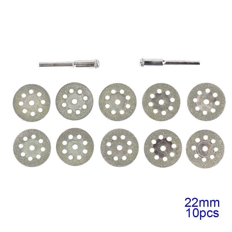* 10 шт. 22 мм мини шлифовальный круг алмазный режущий диск + 2 шт. оправки для вращающихся инструментов