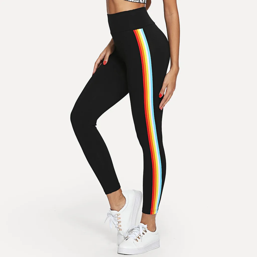 Женские эластичные брюки-карандаш с широким поясом в полоску