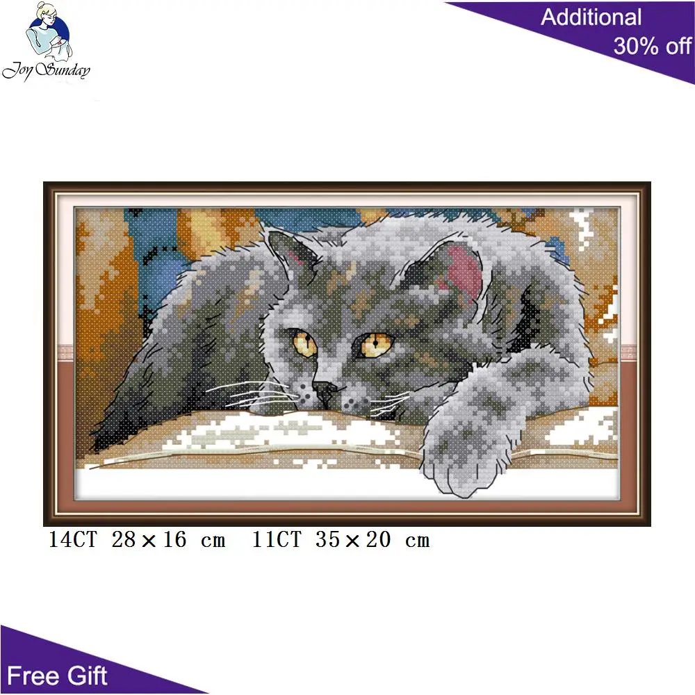 Joy Sunday Cats украшение для дома DA253 DA254 14CT 11CT штампованный Счетный Британский короткошерстный Кот игла Искусство ремесло крестиком наборы