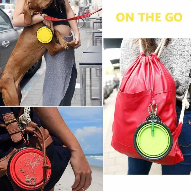 Портативная Складная миска для собак Складная расширяемая чашка блюдо для питомца кошки подача воды пищи портативная миска для путешествий Бесплатный карабин