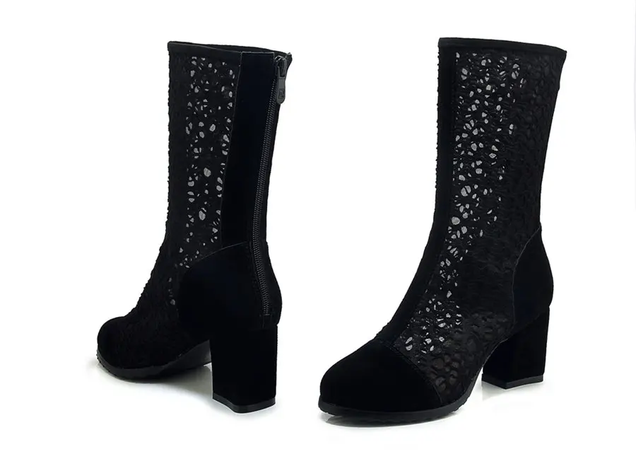 Женские сапоги до середины икры с круглым носком на высоком каблуке