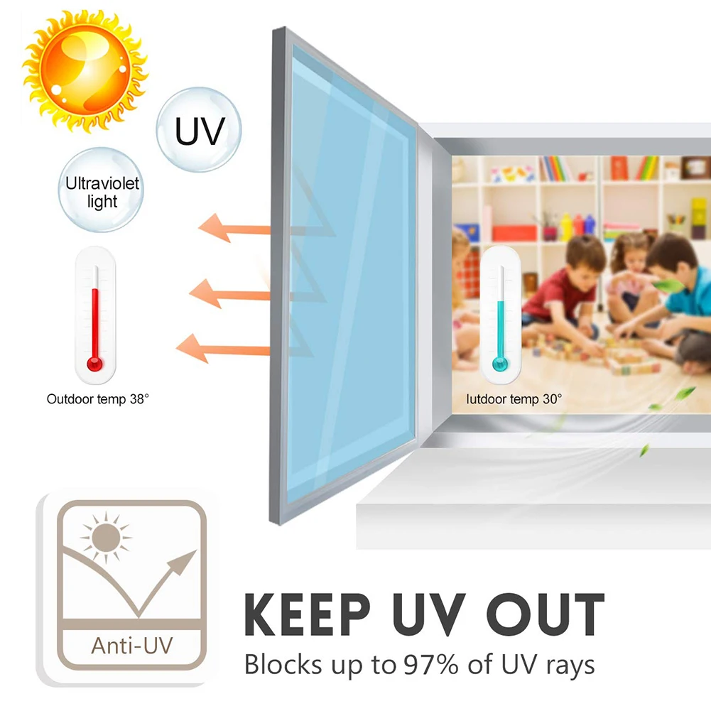 -Эта пленка для окна для защиты от УФ-лучей может блокировать 90% вредных лучей, которые могут повредить вашу кожу, предотвратить вашу драгоценную мебель и украшения интерьера от выцветания.