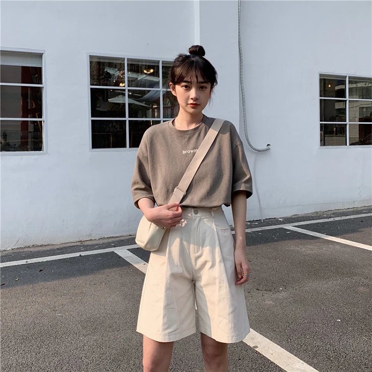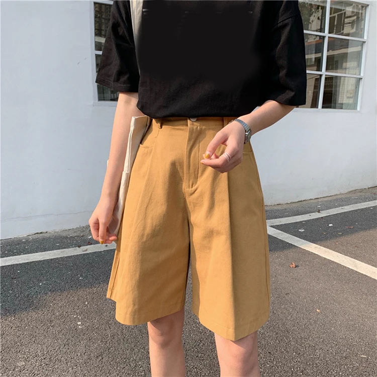 Женские повседневные шорты до колена, удобные хлопковые шорты с высокой талией и широкими штанинами, уличная одежда, лето 2019