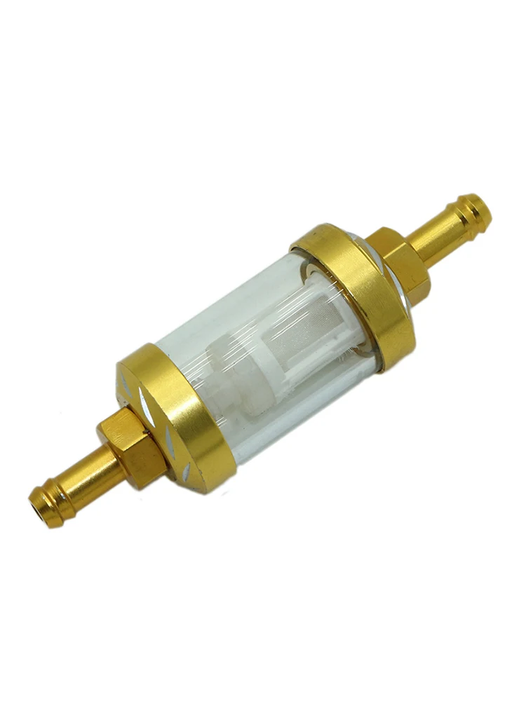 Особенности: 1. Простота установки и практичность в использовании, вы можете легко открутить чистящий фильтр. 2. Соединение из алюминиевого сплава и стеклянная оболочка, вы можете четко видеть чистоту бензина внутри фильтра. 3. Конструкция резьбы принимается, который может быть удален и очищен и может использоваться несколько раз. 4. Соединение из алюминиевого сплава обработано, отполировано и покрыто хромом.