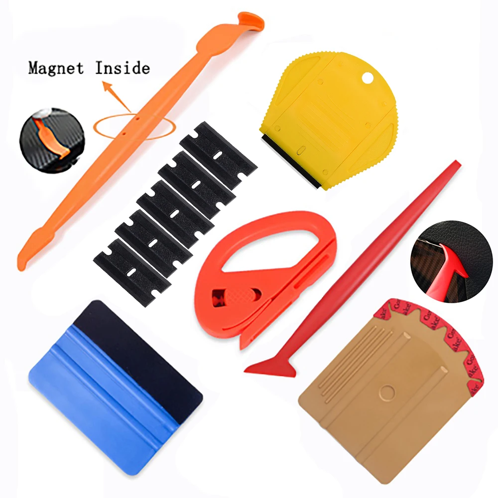 7 в 1 Набор инструментов для автомобильной упаковки: -Тонировочные инструменты для автомобилей, набор виниловой пленки для автомобилей -Снимите пузырьки прямо под пленкой, отрежьте пленку так, как вам нужна форма -Комплект скребок для окон является портативным и удобным в использовании, мягкий скребок, не царапается при эксплуатации.