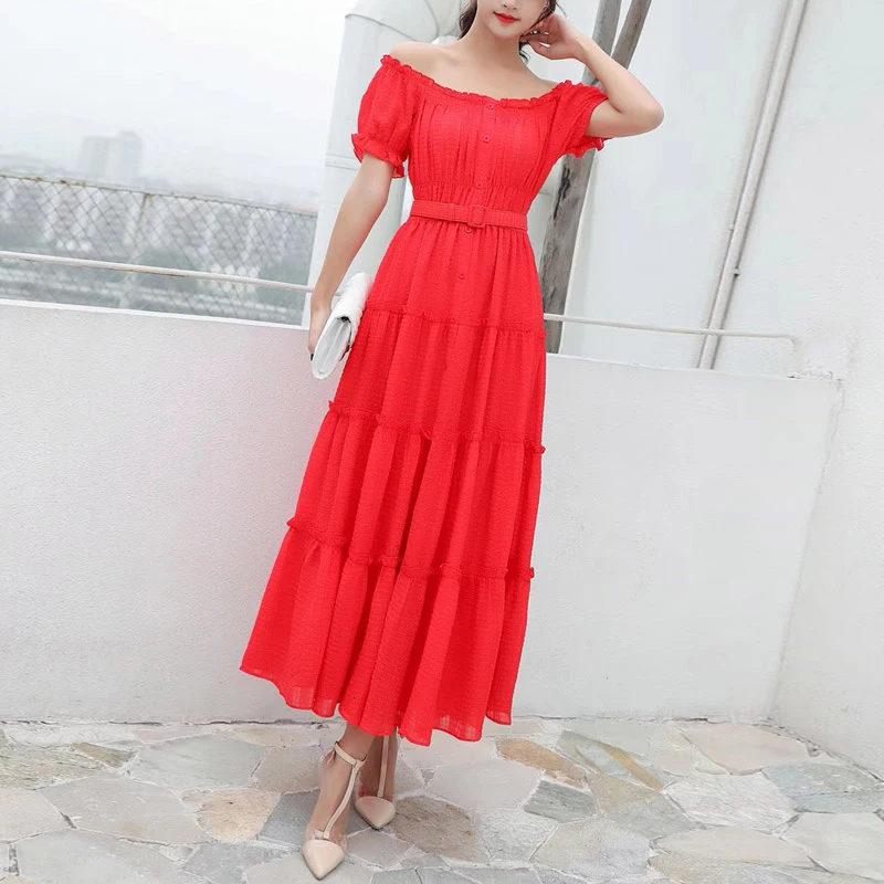 L: Длина: 118 см, обхват груди: 84 см, обхват талии: 68-114 см, плечо: 41-141 см, длина рукава: 21 см,Обхват бедер: 188См