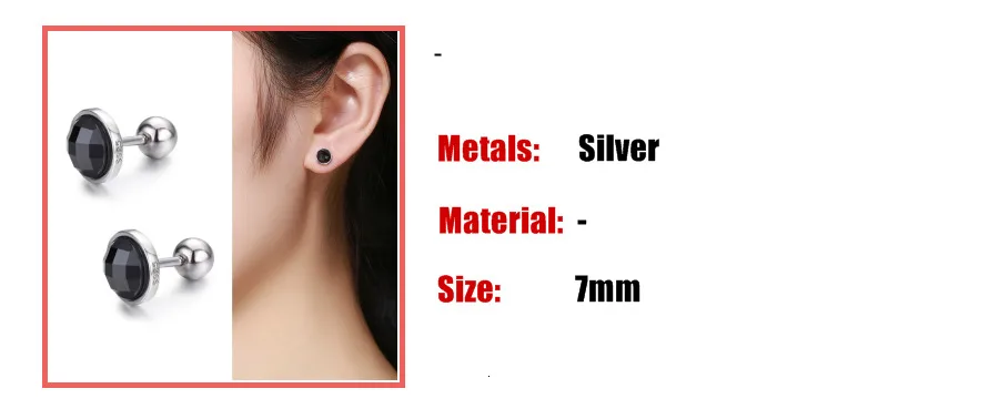 Серьги-гвоздики из стерлингового серебра 925 пробы с круглым лицом черный ониксовый шуруп для женщин дети, девочки ювелирные изделия Orecchini Aros Aretes