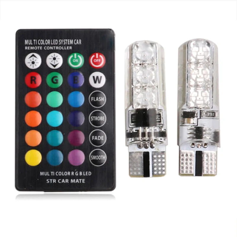1 пара T10 5050 светодиодный автомобильный фонарь с дистанционным управлением 6 Smd многоцветный RGB боковой светильник F-Best