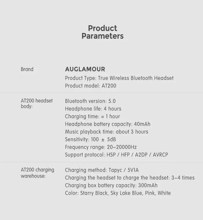 2020 новейшие AUGLAMOUR AT-200 TWS Bluetooth наушники V5.0 IPX5 водонепроницаемые беспроводные наушники HIFI бас наушники для смартфона