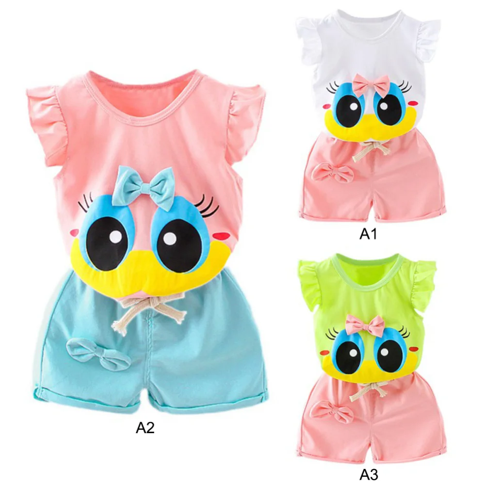 -Милая футболка с принтом для маленьких девочек и короткие штаны.