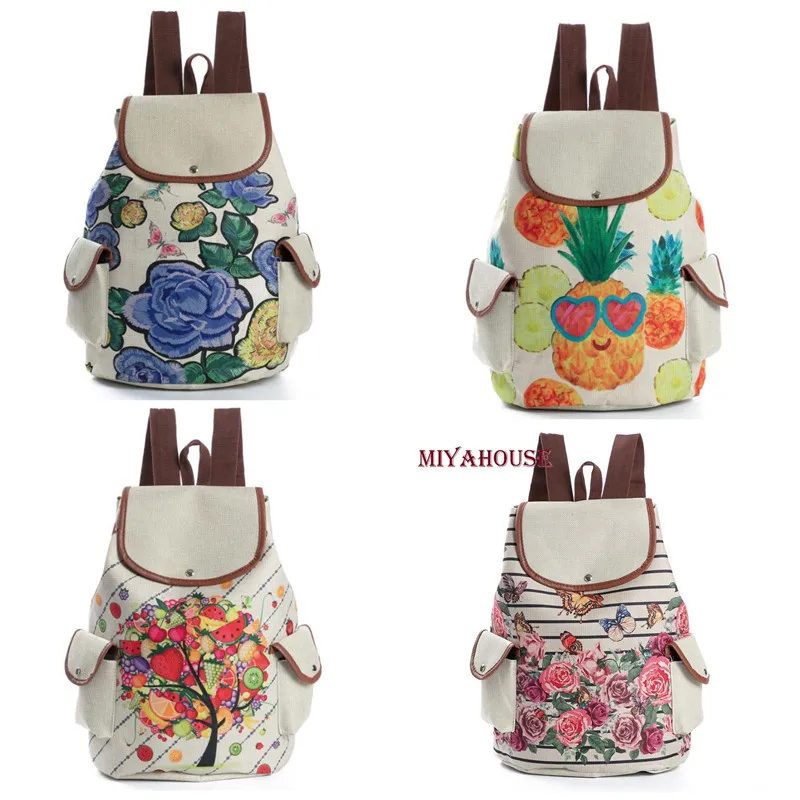 Miyahouse, свежий стиль, Холщовый Рюкзак, женская сумка на шнурке, Женский дорожный рюкзак с принтом фруктового дерева, школьная сумка