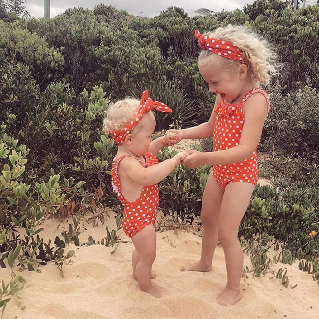 Детский купальный костюм в горошек с рюшами на лямках для маленьких девочек; Детский комбинезон с повязкой на голову