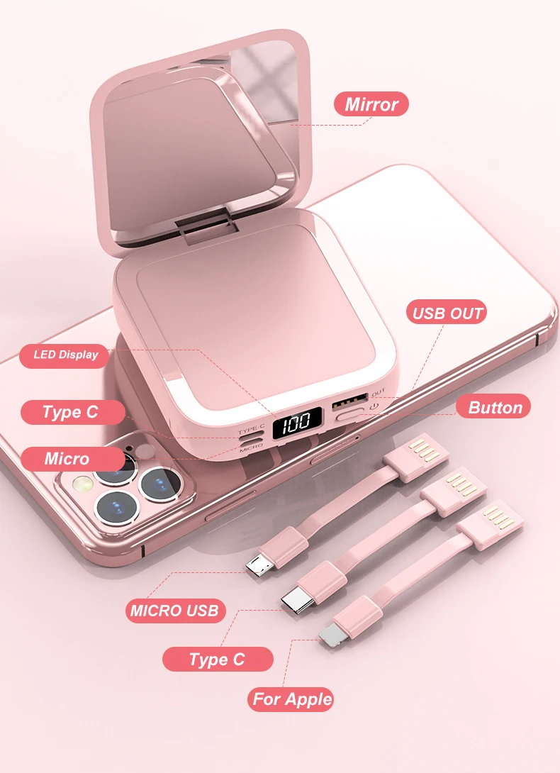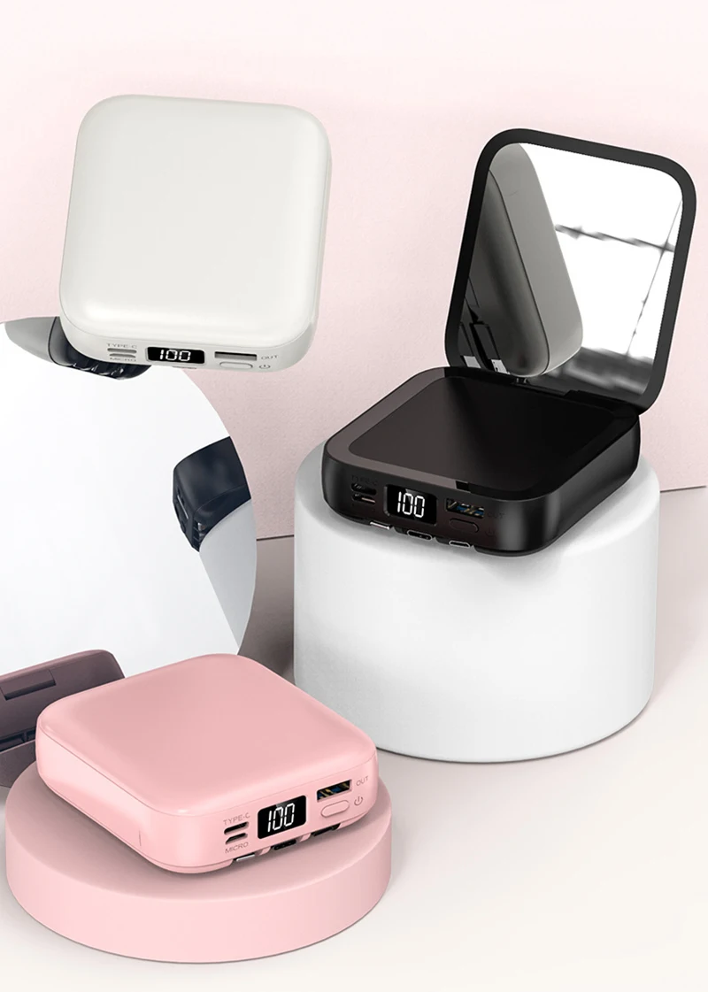 10000mAh Portable Mini Mirrow Power Bank Screen PhoneWireless