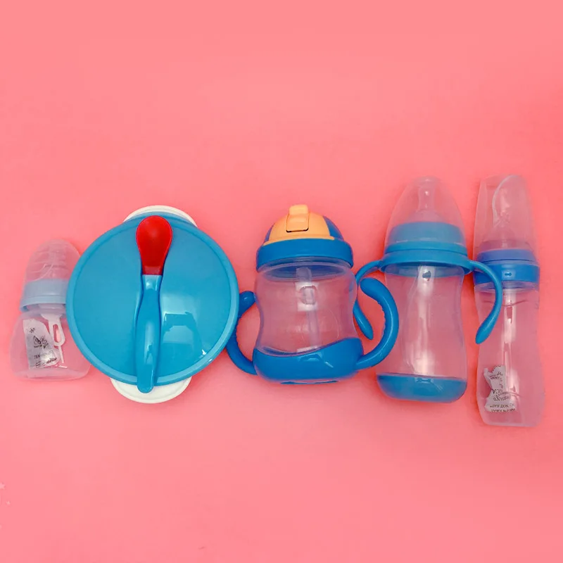 5 шт., обучающая чаша для кормления детей с ложкой, чашка для бутылочки, набор ложек, посуда для малышей, чаша с мультипликационным рисунком, бинауральный детский набор для кормления