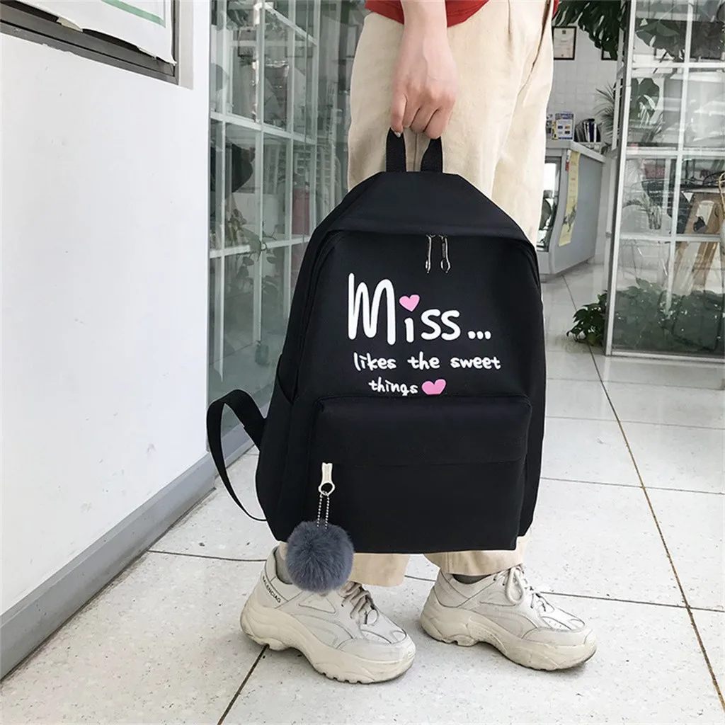 Студенческий рюкзак с мультипликационным алфавитом, повседневный вместительный дорожный комплект из 4 предметов