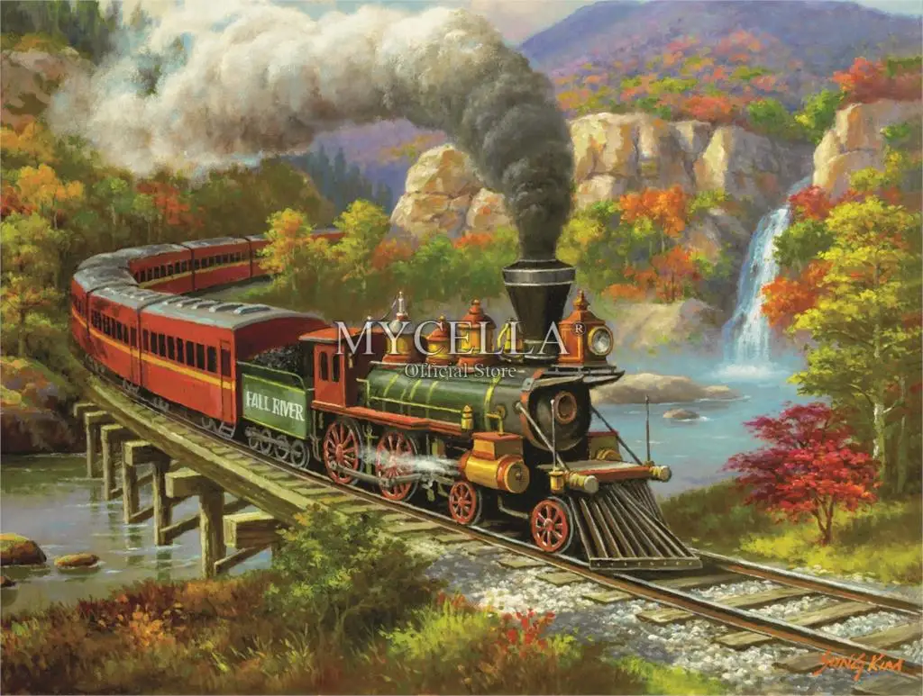 Мультфильм 5d Diy Алмазная Картина Вышивка крестом Алмазная вышивка поезда и локомотив осенний пейзаж полная мозаика домашний декор подарки для детей(ACD2564)