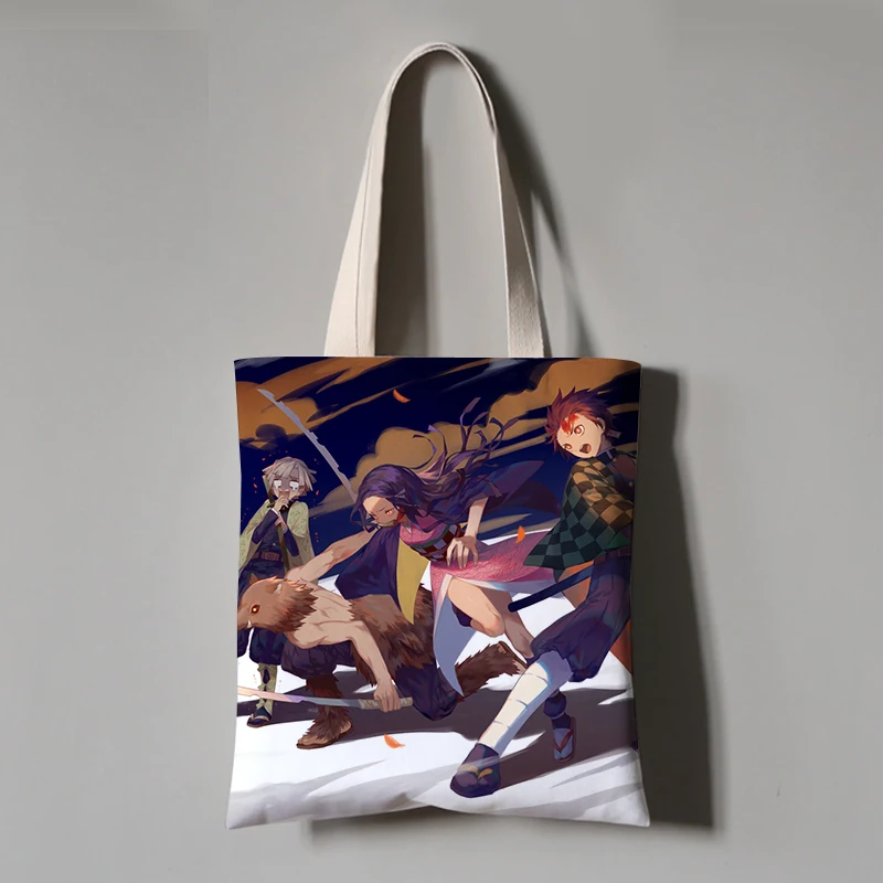 Demon Slayer: Kimetsu no Yaiba, холщовая книжная сумка, сумки через плечо для женщин, сумка для покупок своими руками, дорожные школьные сумки, женские сумки на плечо
