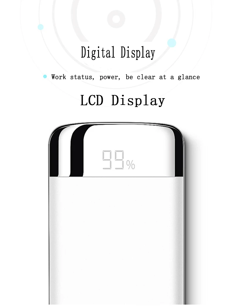 1. Три выхода USB, светодиодный светильник, экран показывает состояние зарядки, в любое время Управляйте питанием. 2. Долгий срок службы, более чем в 1000 раз зарядки и разрядки. 3. Использование улучшенного интеллектуального чипа защиты, защита от перезарядки, защита от разряда, защита от перегрузки, короткая защита от циркуляции, защита от утечки и пять тяжелых средств защиты. 4. Литий-полимерный, длительный срок службы, более безопасный5. После 72 часов снова текст, производительность продукта стабильна
