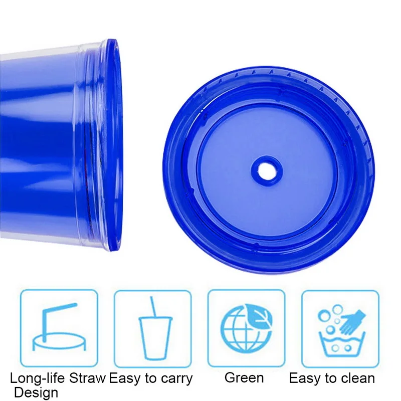 1. Новый пластиковый стакан с крышкой и соломой, большое отверстие для легкого наполнения кубиков льда или любых напитков.