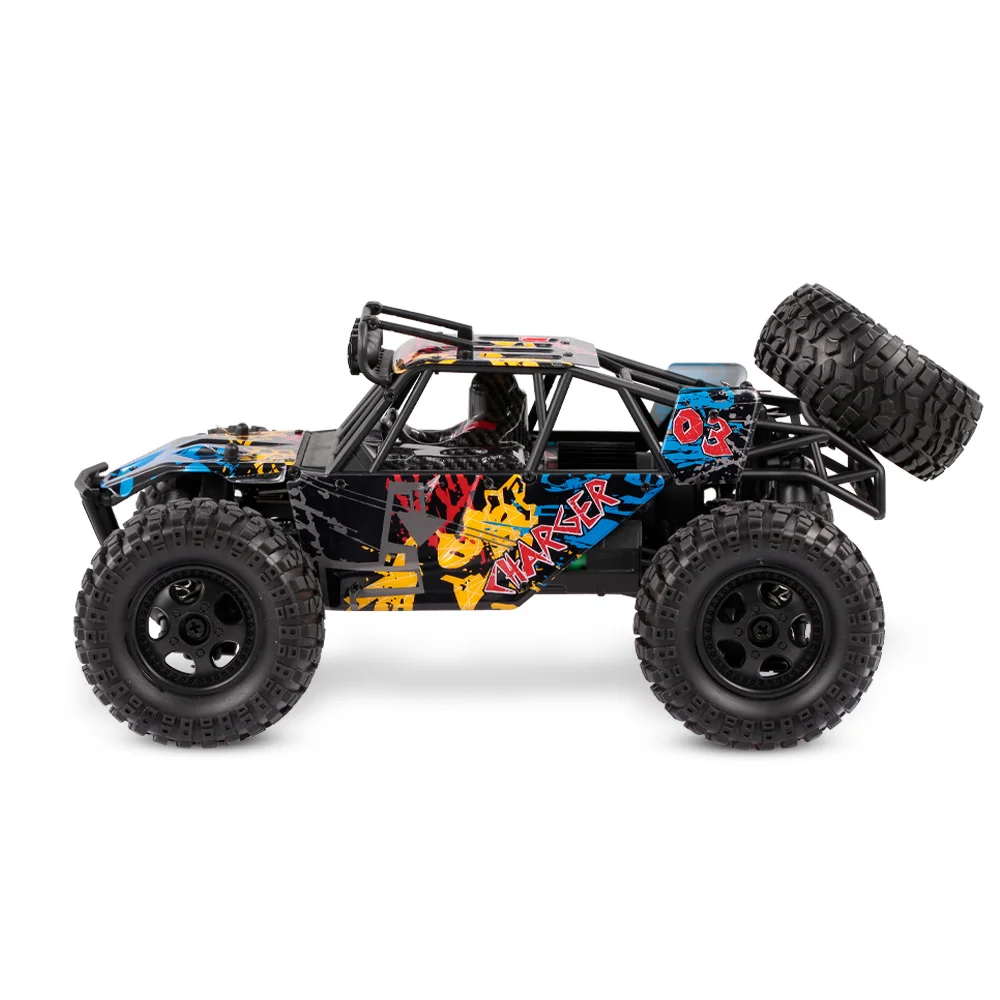 Технические характеристики:Название продукта: 1/16 радиоуправляемое багги грузовикЧастота дистанционного управления: 2,4 ГГцЦвет: разноцветныйСистема привода: 4WDМотор: Высокопроизводительный 390 матовый двигательМаксимальная скорость: 36 км/чРасстояние дистанционного управления: около 100 мАвтомобильный аккумулятор: 2*18650 3,7 V 1500 mAh литий-ионный аккумулятор (42 г/шт.)Размер батареи: 65*18*18 мм/штВремя зарядки: около 150 минутВремя работы: около 18 минутАккумулятор контроллера: 3 * батарейки типа АА (не входят в комплект)Размер: 329*224*157 мм