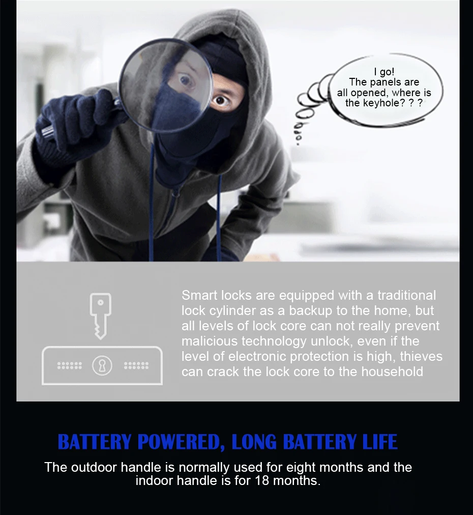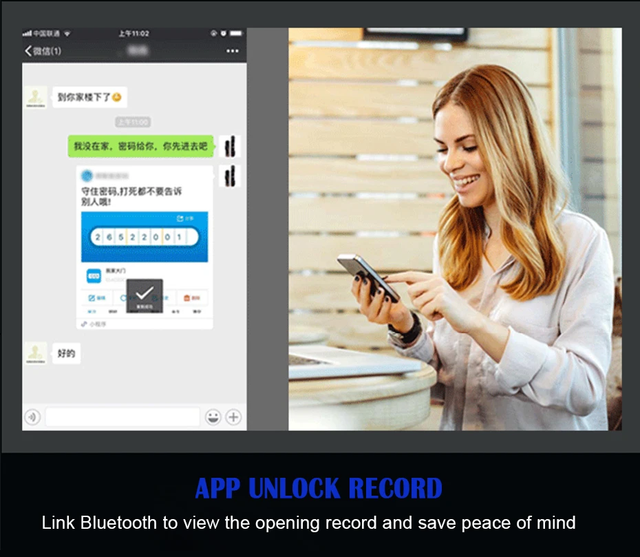 Стиль разблокировки: функция 4 в 1, пароль, rfid-карта, приложение Bluetooth, USB.