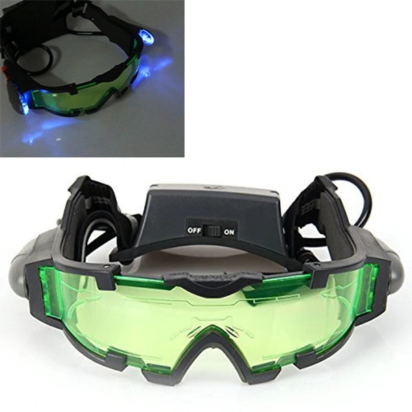 Очки ночного видения, видимость 8 м: эти очки позволяют видеть в темноте благодаря их зеленому стеклу и их синим огням