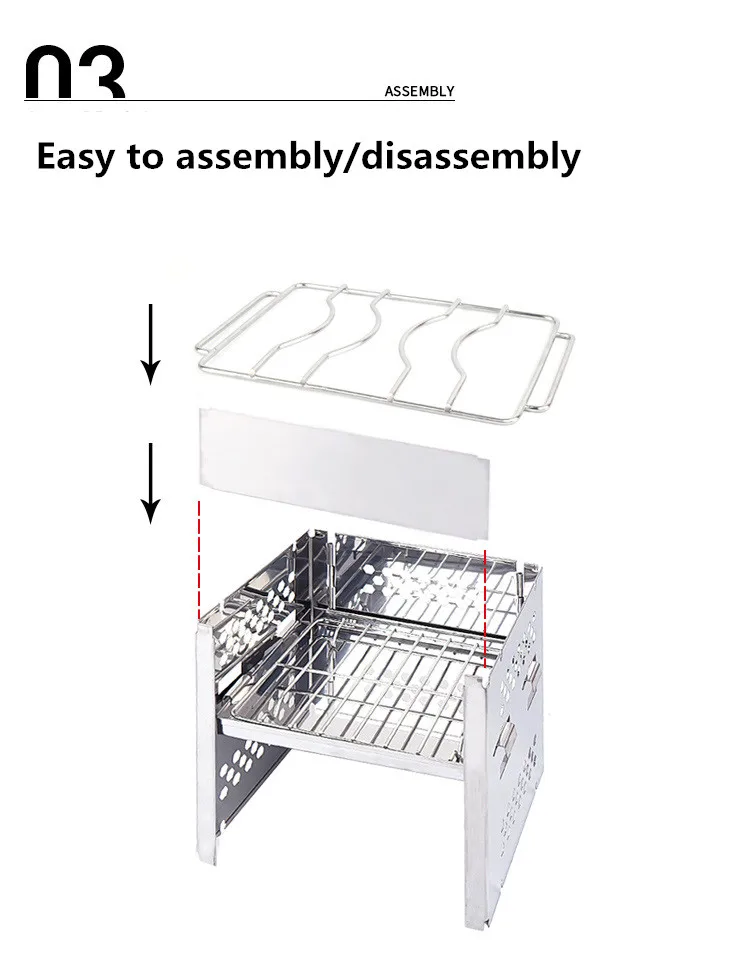 Складной мини-гриль Размеры: 20,5*15,5*29 см при использовании. Время хранения 20,5*15,5*2,6 см (Бесплатный мешочек для хранения) Вес: 800 г Материал: 430 рама из нержавеющей стали, 201 сетка из нержавеющей стали