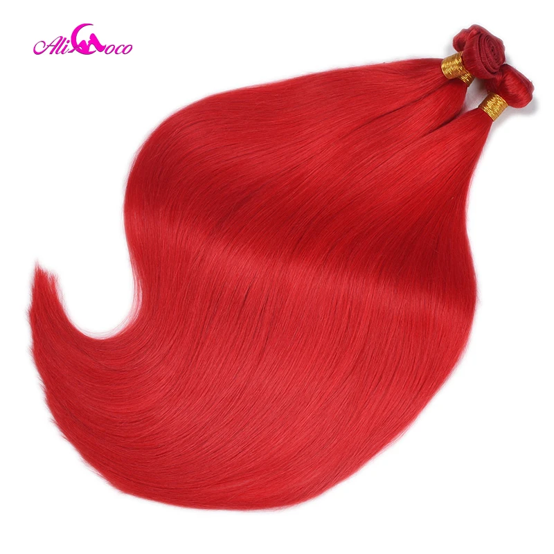 Али Коко прямые волосы пучки с 4*4 закрытие красные бразильские человеческие волосы пучки с закрытием 10-30 дюймов remy волосы Кружева Закрытие