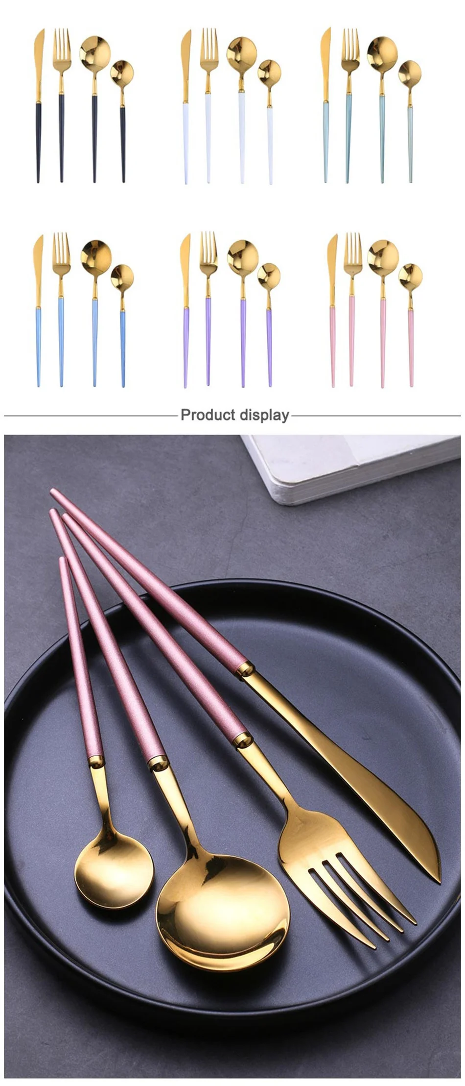 1 комплект (4 шт.) включает:1.ПКОсновная ложка + 1ПКВилка для основного блюда+1.ПКГлавный нож+ 1 чайная ложка