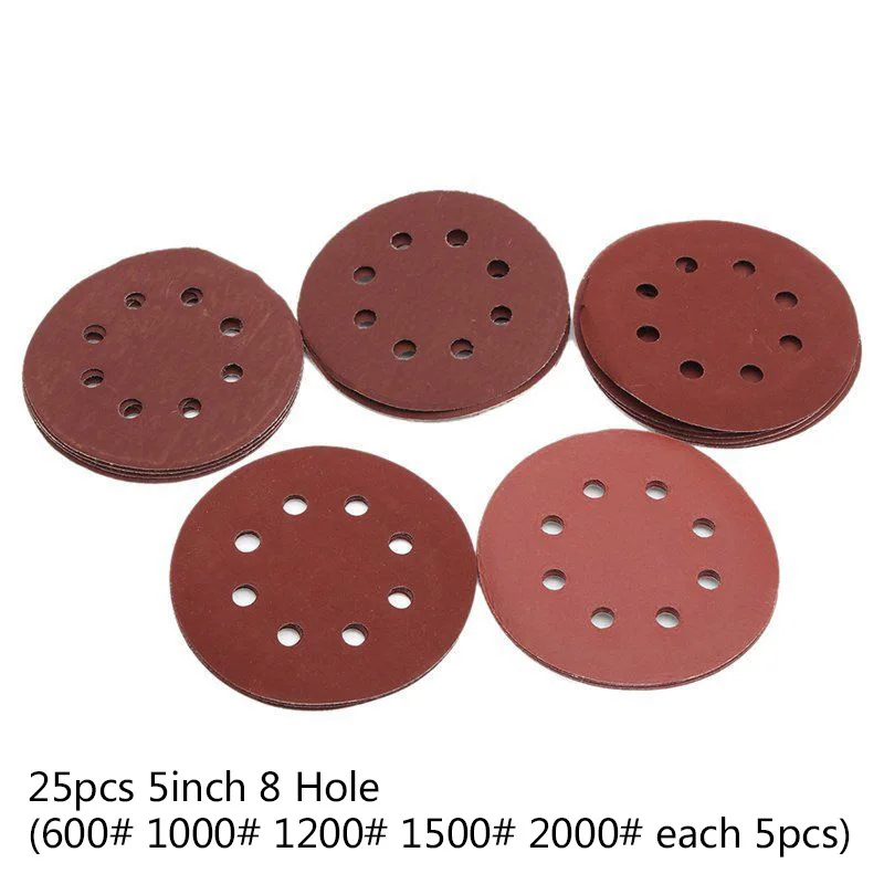 *25Шт 5 дюймов 8 отверстие Шлифовальный НАБОР ДИСКОВ идеально подходит для металлической и неметаллической полировки и шлифования.