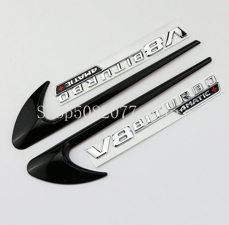 Vent Fender отделка эмблемы лезвие логотип V8 BITURBO 4matic + для Mercedes Benz AMG V8 C200 C300 E300 E400 W213 стайлинга автомобилей сбоку Стикеры