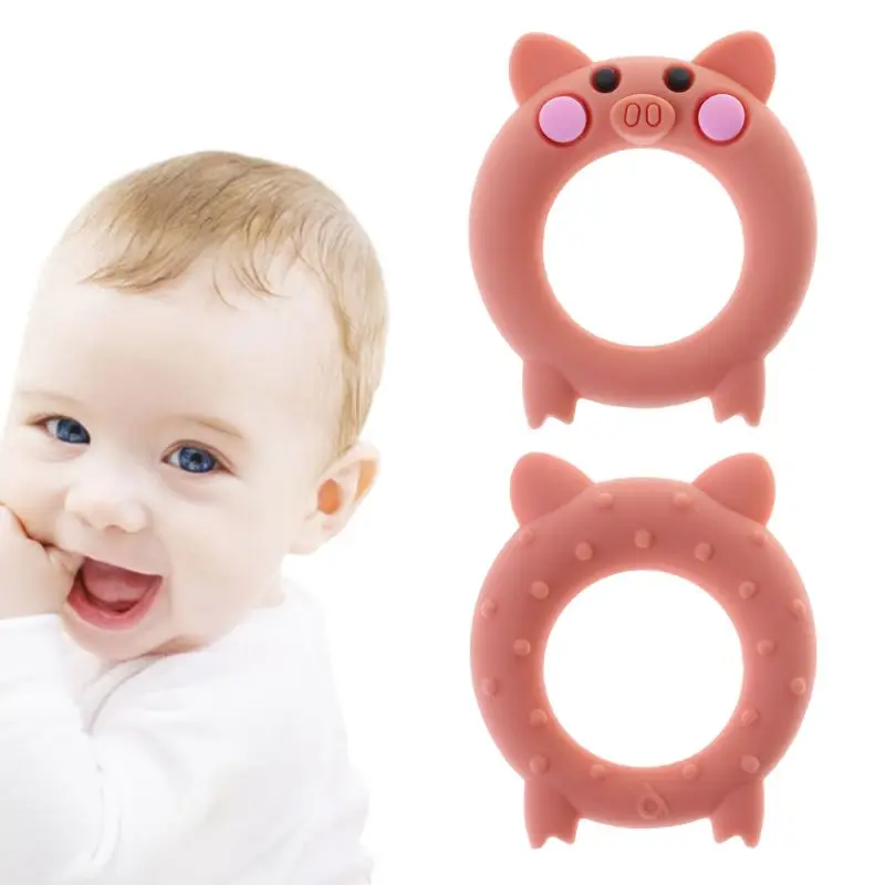 Детский Прорезыватель пищевого класса силиконовый мультфильм свинья Прорезыватель для зубов Уход за полостью рта новорожденный пустышка игрушки-Жвачки DIY ожерелье массаж для снятия боли Браслет «зуб» кольцо мягкое эластичное