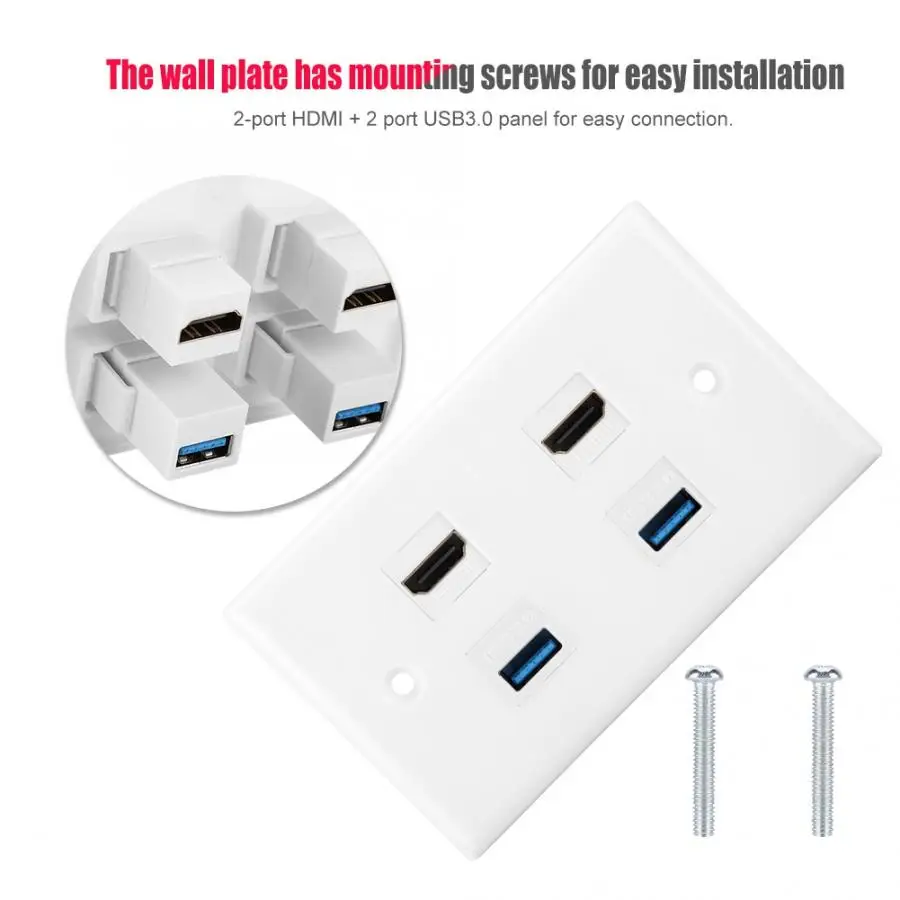 Штепсельная Вилка smart plug 2-портовый + 2 порта USB3.0 муфта крышка Аудио Видео HDTV настенная панель штепсельная вилка адаптер